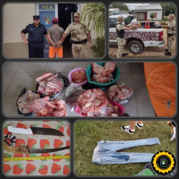 En horas de la siesta de este miércoles, personal de la Comisaría La Criolla y de la Brigada Abigeato Concordia llevaron adelante un allanamiento ordenado por el Juzgado de Garantías de Concordia, en el marco de una investigación en curso. El procedimiento se realizó en una vivienda ubicada en las inmediaciones de las calles Zulmira Zuchuat y Lago Pueyrredón, en la localidad de La Criolla. Durante el operativo, los efectivos procedieron al secuestro formal de tres mochilas, prendas de vestir, calzado, una cuchilla, una chaira, un serrucho, y aproximadamente 40 kilogramos de carne vacuna fraccionada. Por disposición de la fiscal Dra. Natalia Conti, un hombre de 36 años fue trasladado para su correcta identificación, quedando supeditado a la causa judicial que investiga presunto abigeato.