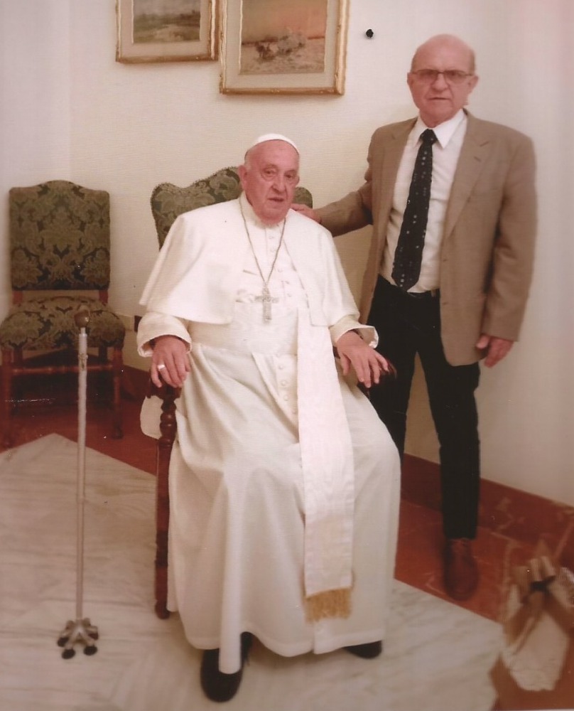 Conversamos con el Dr. Enrique Garzia, de la ciudad de Gral. Galarza, quien fue alumno del seminarista Jorge Bergoglio, en el Colegio de la Inmaculada Concepción, en la ciudad de Santa Fue. Hermosos recuerdos le quedan de esa época y de posteriores encuentros y cartas que intercambiaban. Compartimos su emocionado testimonio junto a su esposa Sara Pita, que lo acompañó a los encuentros con el papa Francisco. Enrique junto a compañeros del Colegio Inmaculada Concepción- Foto tomada por el maestrillo Francisco- -En Galarza había sólo hasta 3er. año de la secundaria y mis padres querían que terminara ese ciclo. Una de las posibilidades que tenía era ir como alumno interno al Colegio Inmaculada Concepción, de la ciudad de Santa Fe. Ahí terminé el secundario para luego seguir veterinaria en La Plata. En ese tiempo, no sé ahora, destinaban seminaristas para acompañar a los estudiantes en su formación y a nuestro grupo de de 4º y 5º año nos acompañó el “maestrillo” (así se los llamaba) Jorge Bergoglio. En la actividad de los jesuitas tenían que tener trato con la docencia, hacer docencia, entonces iban a los colegios. Tenían en Córdoba, en Mendoza y en Santa Fe. Aparte de acompañarnos, nos enseñó literatura y psicología. Él compartía la vida con nosotros, inclusive dormía en nuestros dormitorios. Después él se va, cuando termina esos dos años, justo los dos que tuve yo la suerte de tenerlo, ya que también yo finalizaba el secundario. Él se va al Colegio Mayor de San Miguel, en Buenos Aires, que es donde estos sacerdotes finalizan sus carreras para ordenarse. Estando en La Plata donde estudiaba Veterinaria, recibo la invitación para su ordenación, la que seguramente llegó por medio de mi familia. Yo no sabía dónde era San Miguel, así que no fui, pero siempre siguió mi amistad con los compañeros de La Inmaculada, en Santa Fe. Después de muchos años me entero de que lo nombraban Arzobispo de Buenos Aires. Me puse a escribirle una carta; escribía 2 o 3 renglones por día y dejaba un tiempo. No sé por qué, pero demoré 3 años en terminar esa carta. Después se la envío y le digo: “Aunque vos no creas, 3 años este estuve escribiendo esta carta”. Entonces me contesta y me dice, “¿Ahora vas a esperar 3 años más para contactarte? No, vení al Arzobispado”. Yo no quería ir frente a la catedral, al Arzobispado. Pasa el tiempo, llamó por teléfono; estábamos en Buenos Aires. Su esposa Sara acota: -“Nosotros teníamos los chicos estudiando en Buenos Aires. Y suena el teléfono ahí en el departamento, un teléfono de línea y atiendo yo. Dice, “yo quiero hablar con Enrique García, García con Z. ¡Ah, ah, sí, sí, sí! Le digo, sí, está acá. ¿De parte de quién?, pregunto porque pensé que era alguien por los caballos, ya que Enrique vende caballos. Pregunto de parte de quién y me dice “de Jorge”. Entonces le digo, “Toma", le digo, "Jorge se llama". Entonces él agarra el teléfono y dice, “Hola”. “¡Ay, Jorgito, sos vos, Jorgito, sos vos!” y se metió en una habitación y se quedó hablando largo rato”. Continúa Enrique: ¿Por qué aclaro Garzia con “Z”? A mí me costó mucho porque donde no te conoce nadie, cuando los profesores pasaban lista no sabían si era con s, c o z, le daban distintas pronunciaciones a mi apellido y yo tenía que vivir aclarando “Garzia con Z”. En el cónclave en que eligieron a Ratzinger yo le escribo y le digo, “Menos mal, le digo, que no te eligieron. De qué te salvaste. ¿Vos sos medio futbolero o no? Mira, ¿sabes por qué te digo? Porque vos para que allá estés bien te tienen que patear el córner, vos saltar solo a cabecear y que el arquero esté en el suelo. La única forma que hagas un gol. Porque te van a hacer pedazos ahí adentro”. Pasó eso, resulta que después lo eligen papa. Le escribí enseguida y 4 días después de que asumió, me contestó. Primer encuentro con Francisco en el año 2014- Cuando lo eligen Papa, empieza a comunicarse todo el grupo de exalumnos. Algunos querían ir enseguida. Él nos dijo; “vayan viniendo”. Pero muchos no pudieron, no nos organizamos para ir el grupo, así que ese proyecto no se concretó. Nosotros viajamos en el año 2014; por medio de la Secretaría le hice saber que lo veríamos en la Plaza de San Pedro un miércoles, como siempre, la recorría y se detenía ante todos y le aclaré que había sido alumno suyo. Sí, entonces estábamos ahí en la en la cola y de ahí veía allá la plaza que era como una cancha de fútbol. ¿Dónde nos irá a tocar?, me preguntaba. Nos dijeron que teníamos que entrar más adelante. Recuerdo que estaba un defensor del pueblo de la provincia de Buenos Aires y otro que había llegado de Israel y esperaba hacía 5 días. Entonces después estamos así por ahí atrás, allá arriba una escalera, una puerta que se abre, no sé si era un balcón. Estábamos todos en fila, entonces por ahí dicen: “Yo voy a ir nombrando, se van a comportar". Yo dije, “¿Dónde me va a tocar?” Entonces primero el defensor del pueblo de la provincia de Buenos Aires, segundo, el que había venido de Israel. Tercero, Enrique Garzia, con Z. Entonces ahí estaba el límite, estábamos ahí. Cuando vamos al Vaticano hicimos todos los trámites a través de la secretaría para ir a verlo a la plaza, Ahí se va acercando a nosotros. Y estábamos al costado del parque. Él todavía no había llegado ahí a vernos. Después yo ya le hago seña, “Che, estoy acá”. Me ve, me agarra las manos y pudimos hablar un poquito. No nos podíamos detener tanto. Tenemos una foto de ese momento. Más adelante comenta Sara, la esposa de Enrique: “Viajamos dos veces a Roma a verlo a Francisco; solos por nuestra cuenta, nunca con la promoción; la promoción nunca viajó como tal. Cada uno iba como podía, como quería, como conseguía los contactos. El primer viaje nuestro fue en 2014; hacía un año y pico que Franci
