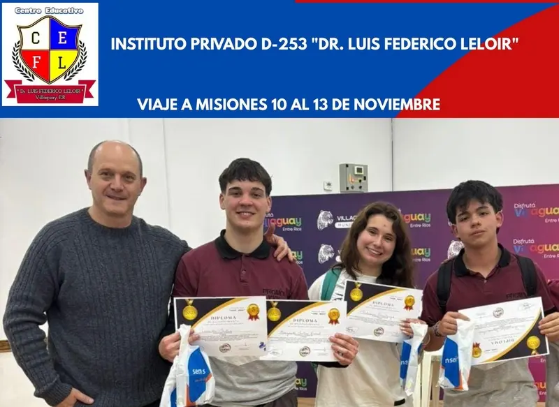 Estudiantes del Instituto Federico Leloir necesitan de tu ayuda Del 10 al 13 de noviembre, un grupo de alumnos representará al Instituto Federico Leloir y a la ciudad de Villaguay en la final del Concurso Sembrando Empresarios, que se realizará en Misiones. Para concretar este importante viaje educativo, necesitan cubrir los gastos de manutención y alojamiento. Por esta razón, solicitan la colaboración de toda la comunidad. Cualquier aporte suma, ya sea en dinero o donaciones para rifas. Desde ya, agradecen profundamente a los comercios, instituciones y particulares que han brindado su apoyo. Datos para transferencias: Banco: Banco de la Nación Argentina CBU: 0110560530056010777015 Alias: brian.dure.24 Titular: Brian Alexis Duré CUIL: 23-42601672-9 Para consultas o informar transferencias, comunicarse al: 3455 540870 (Prof. Brian Duré). Contamos con tu colaboración para que nuestros estudiantes vivan esta experiencia única y de crecimiento. Villaguay 2025-10-01