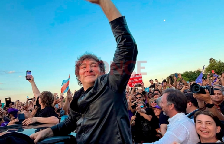 El presidente hizo un breve recorrido por la costanera baja de la ciudad de Paraná, en medio de un tumulto de seguidores y un importante despliegue de fuerzas federales y provinciales. Con un megáfono, saludó a sus libertarios y brindó un escueto mensaje.