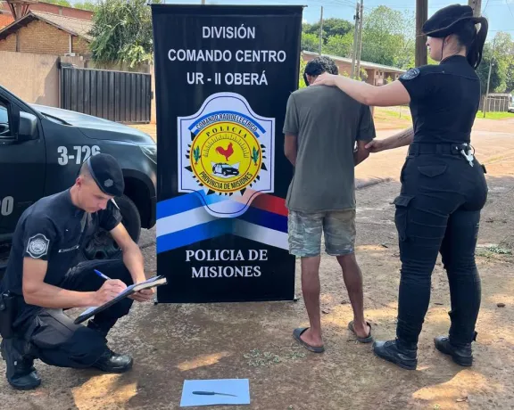 Un detenido por atacar a su hermano y padre con un cuchillo tras una discusión familiar Sucedió en la tarde del domingo, el padre del detenido denunció que su hijo llegó a su domicilio a ocasionar disturbios y a amenazar de muerte tanto a él como a su otro hijo. lunes 06 de octubre de 2025 | 13:17hs. Efectivos de la División Comando Radioeléctrico Zona Centro de la Unidad Regional II de Oberá detuvieron ayer a un hombre de 30 años acusado de agredir con un arma blanca a su hermano y amenazar de muerte a su familia en el barrio Villa Gunther. Según fuentes policiales, el hecho se conoció en horas de la tarde del domingo cuando Eduardo F. (63) se presentó en la dependencia policial para denunciar que su hijo Carlos Alberto F. (30) se encontraba en su domicilio ocasionando disturbios, amenazando de muerte a él y a su otro hijo, identificado como Agustín F. Durante la agresión, el acusado le habría provocado un corte en el brazo a su hermano. De inmediato, una comisión policial se dirigió al lugar y procedió a la detención del agresor, además del secuestro de un cuchillo tipo sierra, presuntamente utilizado en el ataque. El detenido fue trasladado y puesto a disposición de la Comisaría Seccional Segunda, donde se instruyen las actuaciones judiciales correspondientes. Compartí esta nota: