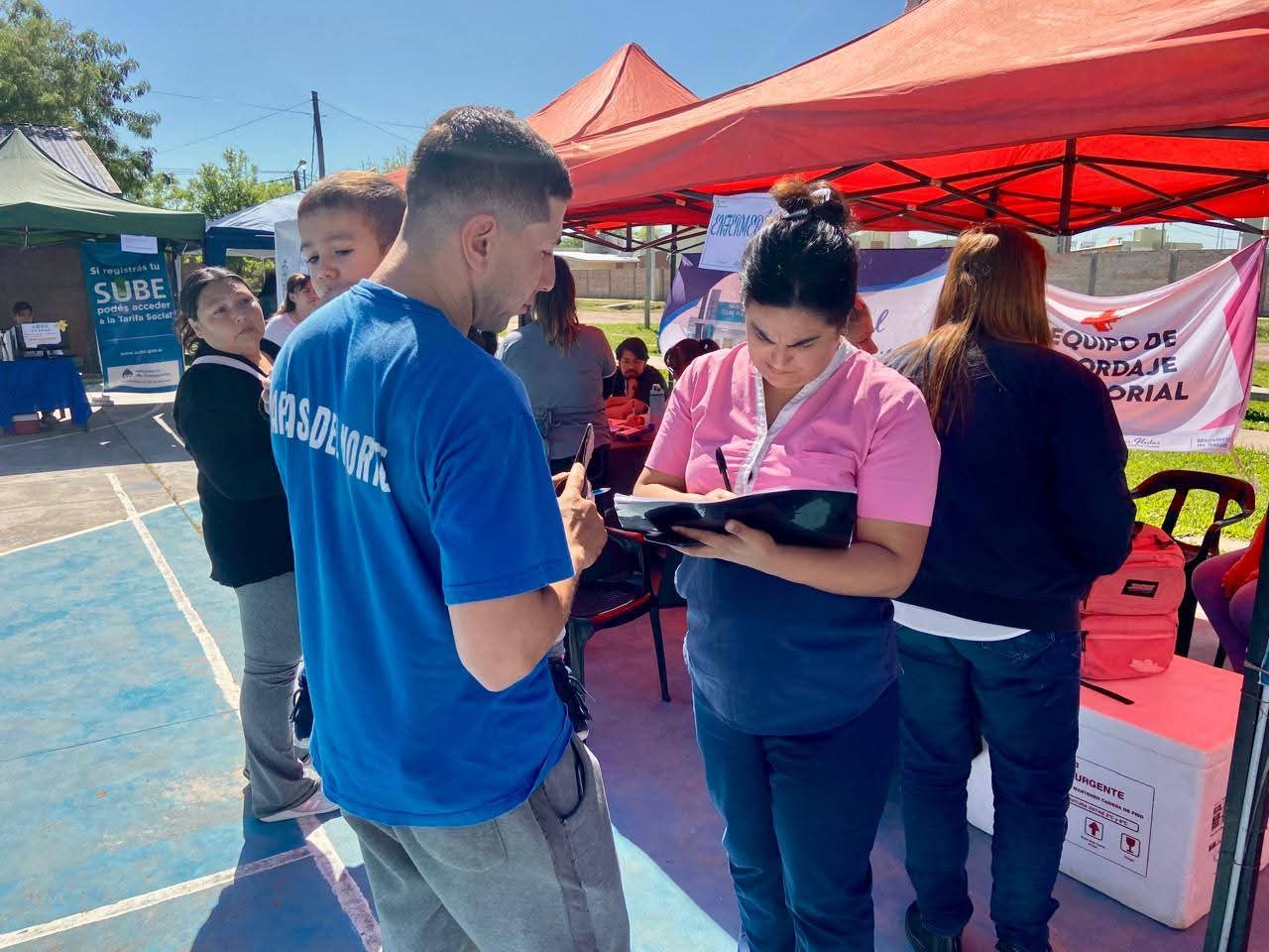 Profesionales de la salud, áreas sociales y fuerzas de seguridad trabajaron de manera conjunta para acercar servicios y gestiones a los vecinos del barrio. En el marco de las políticas de cercanía impulsadas por la gestión municipal, este jueves se llevó adelante un operativo de abordaje territorial en el playón del barrio 444 Viviendas de la ciudad de Fontana, con la participación de distintos organismos locales y provinciales. La jornada contó con la presencia de profesionales del Hospital “Luis Fleitas” y equipos de la Secretaría de Desarrollo Social del municipio, encabezada por Verónica Pinsker, quienes coordinaron acciones destinadas a brindar asistencia médica, asesoramiento y acompañamiento social a los vecinos del sector y zonas aledañas. También participaron agentes de Zoonosis Municipal, encargados de tareas de prevención sanitaria y control animal, junto con la División de Prevención y Coordinación Interinstitucional del Departamento de Lucha contra la Trata de Personas, bajo la supervisión del subcomisario Aldo Castillo. El objetivo del operativo fue acercar los servicios públicos al territorio, facilitar gestiones y promover el contacto directo entre los equipos de trabajo y la comunidad. Durante la jornada se realizaron controles de salud, vacunaciones, asesoramiento social y charlas preventivas, en un espacio de articulación entre salud, seguridad y desarrollo humano. “Tenemos un gran compromiso por mejorar la vida cotidiana de nuestros vecinos y atender las necesidades más urgentes de cada familia”, expresaron desde la Secretaría de Desarrollo Social, destacando la importancia del trabajo conjunto entre las distintas áreas. Desde el municipio remarcaron que este tipo de intervenciones forman parte de una política sostenida de gestión, que busca fortalecer la presencia del Estado local en los barrios y garantizar el acceso a los servicios esenciales. El intendente Fernando Cuadra valoró la iniciativa y subrayó que la articulación interinstitucional “es fundamental para construir una ciudad más saludable, inclusiva y solidaria”.