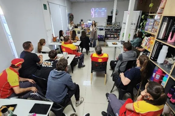El Ministerio de Desarrollo Humano, a través de la Secretaría de Políticas del Cuidado, se realizó junto al área local, una nueva instancia de capacitación en el marco de la Ley Micaela destinada a trabajadores de una estación de servicio de la localidad de Crespo. Desde el área local se articuló para que las profesionales de la Dirección brinden una instancia de diálogo y reflexión en torno a las violencias por motivos de género. jueves 09 de octubre de 2025 | 17:45hs. Desde el Ministerio de Desarrollo Humano, a través de la Secretaría de Políticas del Cuidado, se desarrolló de manera conjunta con el área local, una nueva instancia de capacitación en el marco de la Ley Micaela destinada a trabajadores y trabajadoras de la estación de Servicio Shell de dicha localidad. La provincia, desde la Dirección de Mujeres, como lo viene haciendo sostenidamente en estos 21 meses de gestión, articula con las áreas locales para llegar de manera real y efectiva a cada rincón con herramientas de prevención y/o sensibilización en torno a la problemática de las violencias hacia las mujeres. En esta oportunidad desde el área local se articuló para que las profesionales de la Dirección brinden una instancia de diálogo y reflexión en torno a las violencias por motivos de género. La misma se enmarca en lo que establece la Ley Nacional Nº 27.499, con adhesión provincial mediante Ley Nº 10.798. En la apertura de la actividad brindaron unas palabras de bienvenida Ayelén Acosta, secretaria de Políticas del Cuidado y Joaquina Brondi, directora de Mujeres del Ministerio de Desarrollo Humano, junto a Sonia Goette responsable del Área Mujer de Crespo. Además se contó con la participación de las autoridades y el personal de la empresas. A la fecha, la Dirección de Mujeres, ha recorrido más de 22 localidades con mas de 35 instancias de capacitaciones llegando a 2500 personas entre adolescentes, adultos y agentes del Estado, de los tres poderes. Se brindan talleres y capacitaciones con dinámicas específicas para cada público entendiendo que hay mucho por hacer pero con la seguridad de que la prevención, formación y sensibilización es una de las herramientas fundamentales para poder llegar a las personas y modificar hábitos, costumbres y desnaturalizar prácticas históricas y construir juntos una provincia libre de violencias. (APFDigital)