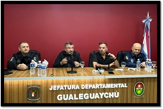 La exposición estuvo a cargo del ministro de Seguridad y Justicia, Néstor Roncaglia, el jefe de la Policía de Entre Ríos, Claudio González, y el jefe departamental de Gualeguaychú, Luis Alberto Báez. Durante la conferencia, explicaron que el hombre fue aprehendido en la entrada de un hotel de la ciudad mientras intentaba organizar su cruce ilegal hacia Uruguay junto al menor. En ese sentido el ministro de Roncaglia, resaltó la importancia del diálogo y trabajo conjunto con el Ministerio de Seguridad de Córdoba, a cargo de Juan Pablo Quinteros, quienes brindaron información necesaria para realizar el operativo. "Inmediatamente tras recibir la información este mediodía nos pusimos a trabajar con el jefe de Policía, los jefes de la departamentales y el personal de la departamental Gualeguaychú", sostuvo. Puntualmente informaron que durante la detención, Rodríguez Laurta, sufrió una descompensación por lo que fue trasladado a un hospital local para recibir atención médica y ya se encuentra alojado en una dependencia policial. Mientras que el niño fue puesto bajo resguardo por el Consejo Provincial del Niño, Adolescente y Familia (Copnaf). Sobre el caso En la oportunidad precisaron que el caso de Pablo Daniel Rodríguez Laurta se vinculó con otra investigación en curso en la provincia, que es la desaparición de un conductor de una aplicación de viajes, identificado como Martín Palacios, cuyo vehículo fue hallado incendiado en Córdoba. Según indicaron, Rodríguez Laurta había solicitado un viaje desde Concordia a través de una aplicación, un automóvil Toyota Corolla conducido por Palacios. La familia del chofer, al perder contacto con él, radicó la denuncia, lo que dio inicio a la búsqueda en la ciudad de Concordia. El jueves, las autoridades tomaron conocimiento del hallazgo del vehículo incendiado en Córdoba. En coordinación con la Policía de esa provincia, se estableció que Rodríguez Laurta podría estar vinculado al homicidio de dos mujeres, tras lo cual se fugó con su hijo de cinco años.