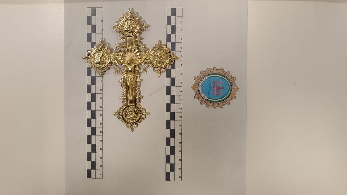 La Policía Local ha recuperado una cruz que había sido sustraída al cura de la parroquia de la barriada de Cerro Muriano. La reliquia, realizada en oro, está valorada en 11.000 euros y, gracias a la investigación de los agentes, se encuentra desde hace unos días de nuevo en esta parroquia de la diócesis de Córdoba. Los hechos se remontan al pasado 10 de octubre, cuando un coche de la Policía Local estaba patrullando por la zona de la Arruzafilla, en la capital cordobesa. Es entonces cuando los agentes observaron a un individuo que se puso nervioso aparentemente con su presencia, subió a un vehículo y reanudó la marcha, para que unos metros más adelante el copiloto que le acompañaba arrojase un objeto a la calzada. La cruz robada al cura de la parroquia de Cerro Muriano recuperada por la Policía Local. / CÓRDOBA Un nombre en el reverso Fue entonces cuando los policías les dieron el alto, al tiempo que buscaron el objeto arrojado desde el vehículo, que resultó ser un crucifijo. Los agentes comprobaron que la cruz tenía inscrito por detrás el nombre de una persona, por lo que le preguntaron a los ocupantes de la furgoneta si el objeto era suyo. Finalmente, tras identificar a los ocupantes del vehículo los dejaron irse por desconocer en ese momento si el crucifijo tenía o no valor económico. Los policías continuaron con las pesquisas y localizaron a la persona que suponían era el propietario de la cruz por el nombre de la inscripción que había en el reverso de la misma, resultando ser este el cura de la parroquia de Santa Bárbara, en Cerro Muriano. Asimismo, confirmaron con un tasador profesional el alto valor del crucifijo, realizado en oro y valorado en 11.000 euros. La investigación posterior permitió conocer que el sospechoso había realizado unos trabajos en la parroquia, en la que aprovechando un despiste de su párroco, habría sustraído la cruz, por lo que ha sido identificado como presunto autor de un delito de hurto.