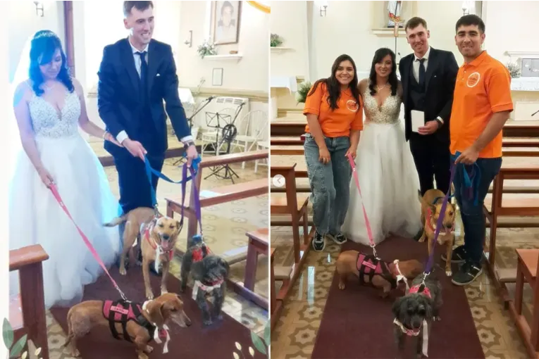 Una pareja de Seguí celebró su boda y sus tres “hijas perrunas”: Laila, Negrita y Gordita, estuvieron presentes en la ceremonia de la Iglesia. El pasado fin de semana, la ciudad de Seguí fue escenario de un casamiento diferente, cargada de emoción y ternura. Los protagonistas fueron Nahuel Schmidt y Lu Ojeda, quienes decidieron compartir uno de los momentos más importantes de sus vidas junto a sus tres inseparables mascotas: Laila, Negrita y Gordita. A pedido de los novios, las mascotas participaron del acto matrimonial, convirtiéndose en parte central de la ceremonia. Con gran dedicación y cuidado, se organizó un operativo especial para que las tres pudieran acompañar a sus dueños durante el evento. Un operativo con corazón Una guardería canina de la localidad tuvo a cargo la preparación y traslado de las mascotas hasta el lugar de la boda y destacaron la excelente predisposición, comunicación y confianza de los novios, lo que permitió que todo saliera a la perfección. Durante la ceremonia, las tres caminaron junto a los novios y permanecieron tranquilas, disfrutando del ambiente festivo y robando sonrisas entre los invitados. El gesto recordó la importancia de incluir a los seres queridos —de todas las especies— en las celebraciones más significativas. Vale recordar que la semana pasada, se conoció un caso de Mendoza, donde autorizaron a las mascotas de una pareja a ser testigos de la unión civil y hasya dejaron sus huellas en el acta. En un hecho inédito en el país, cinco perros serán testigos de una boda civil