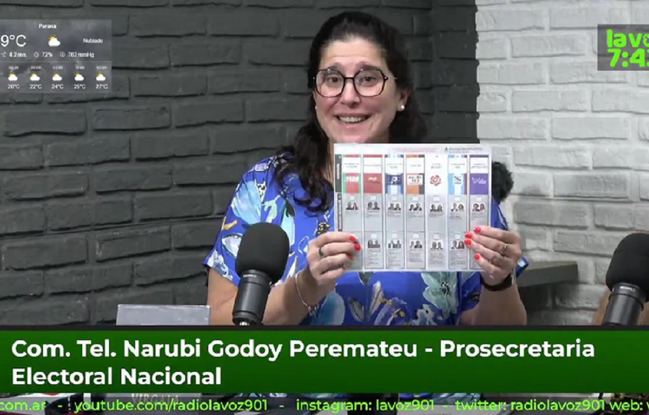 La Prosecretaria Electoral Nacional, Narubi Godoy, visitó los estudios de RADIO LA VOZ, y brindó información sobre la forma de votar con la boleta única papel que se implementará por primera vez este domingo en las elecciones legislativas nacionales. La boleta única papel “nos la va a entregar la autoridad de mesa. Nos vamos a encontrar con toda la oferta electoral concentrada en un único instrumento. Vemos las siete agrupaciones que postulan candidatos para la provincia de Entre Ríos, tanto para la categoría de Senadores Nacionales, en la primera fila, y en la segunda de Diputados Nacionales”, dijo Godoy. “En la primera fila vemos todos los datos de las agrupaciones políticas: nombres, colores, logos, números”. Godoy señaló: “Cuando me busque en el padrón y vea en qué escuela y mesa he sido asignada para votar, en el sitio www.padron.gov.ar, voy a ver mi mesa en la escuela y ahí ya voy a ver el primer cambio porque voy a encontrar a las autoridades de mesa adentro del aula, sentadas”. “Enfrentada a la mesa electoral vamos a ver dos bancos o pupitres, alejados entre sí, y cada uno recubierto por un biombo de cartón, similar al de las urnas, por el cual no se puede ver. Esta cabina de votación va a hacer las veces de lo que conocemos como cuarto oscuro”, dijo. En cada mesa, “vamos a tener boletas para los 350 electores más un 5% más”. El presidente de mesa, “va a entregar la boleta en mano al elector junto con la birome indeleble. Se va a dirigir hacia la cabina de votación, se coloca detrás del biombo y va a realizar la marca para la agrupación política de su preferencia dentro del casillero en blanco”, tilde, cruz, redondel. Deberán hacerse dos marcas en la boleta, una dentro del casillero para la categoría de Senadores Nacionales y otro para el de la categoría de Diputados. “Atrás de la boleta tiene las instrucciones, la firma del presidente de mesa y una línea de puntos. Voy a doblar la boleta detrás del biombo”, continuó Godoy. “Vuelve hacia la mesa, le va a exhibir a la autoridad de mesa y va a introducir la bup dentro de la urna. No hay sobres en esta elección. La boleta funciona como su propio sobre porque preserva el secreto del voto”. “Voy a firmar el padrón donde me indica la autoridad de mesa, me entrega mi DNI y el troquel como constancia”. Si alguien se equivoca al votar, “dobla la boleta detrás del biombo, vuelve hacia la mesa con la boleta doblada, se lo das a la autoridad de mesa y le decís me confundí”, por lo que se le otorgará otra bup. “El voto en blanco, con el diseño de la boleta nacional, es no marcar ningún casillero”, explicó Godoy. “Si hago dos marcas para la misma categoría en distintas agrupaciones, va a ser considero voto nulo para la categoría. O si se realizan escrituras que impiden analizar cuál es el sentido del voto del elector”. “Las medidas de accesibilidad electoral siguen siendo trascendentales en esta elección”. En el caso de voto asistido, “van a ir el elector y el acompañante, ambos se dirigen a la cabina de votación. Lo que va a hacer es hacer las marcas como le indicó el elector”. Si alguien no tiene quién lo acompañe, “es muy importante la figura del presidente de mesa, porque es el único que puede acompañar a más de un elector a votar, es su obligación asistir a quien le solicite la medida de accesibilidad”. Está prohibido “tomar fotografías a la boleta única papel en la cabina de votación en el momento en el que estoy votando. Hay una multa de 70.062 pesos para quien tome fotos”.