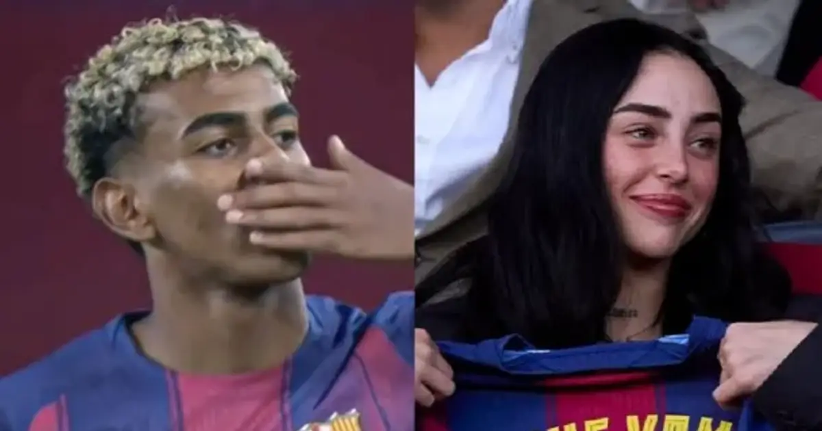 Lamine Yamal volvió a brillar en la Champions League con el Barcelona y fue una de las figuras en la goleada frente al Olympiacos. Sin embargo, el joven futbolista no solo destacó en la cancha, sino que también tuvo un romántico gesto hacia Nicki Nicole. En el estadio Olímpico de Montjuic, el Barcelona dominó el partido de principio a fin. Yamal anotó el tercer gol del encuentro de penal al minuto 68 del segundo tiempo, mientras la cantante rosarina lo observaba desde las gradas. Lo que más captó la atención fue la celebración: Lamine primero se colocó una corona sobre la cabeza y luego señaló a Nicki Nicole, quien no pudo ocultar su sonrisa desde la platea. En paralelo, el jugador del club catalán recibió el Trofeo Kopa, un galardón entregado durante la ceremonia del Balón de Oro al mejor futbolista menor de 21 años a nivel mundial. Este es el segundo año consecutivo que Yamal recibe el premio, mientras espera que el codiciado Balón de Oro sea para el francés Ousmane Dembélé. Nicki Nicole, por su parte, quiso sumarse a la celebración y compartió en sus redes sociales una selfie junto a Lamine, ambos sonrientes y con los ojos casi cerrados por el sol del verano europeo. Junto a la foto escribió: "Mi estrella, te amo", reemplazando la palabra “estrella” con su emoji correspondiente. En la imagen también se destacan los tatuajes en el brazo izquierdo de Nicole y el colgante de diamantes de Lamine con el número diez, el que utiliza cuando juega para el Barcelona. FUENTE: minutouno.com