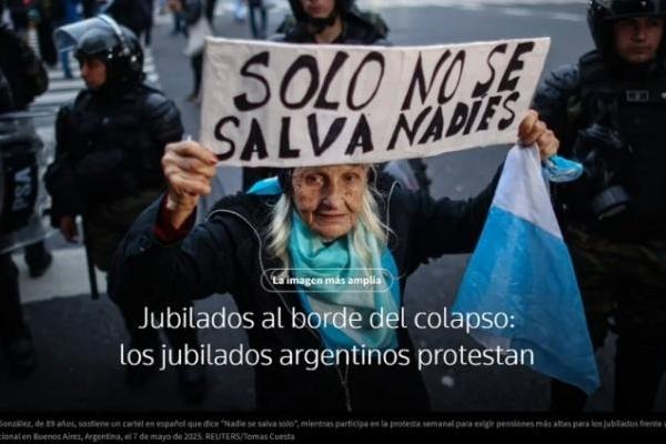 Los reclamos de los jubilados que cada miércoles se manifiestan frente al Congreso de la Nación llegaron a la portada del portal internacional Reuters, que este viernes publicó un extenso artículo titulado “Jubilados al borde del colapso: los jubilados argentinos protestan”. La nota apareció en la primera plana de la agencia, justo cuando en el país rige la veda electoral antes de los comicios legislativos del domingo. Reuters, reconocida por su cobertura económica y política a nivel global, contextualizó la situación de los jubilados dentro de la crisis social que atraviesa la Argentina, marcada por la pérdida del poder adquisitivo y la suba del costo de vida.La publicación, firmada por dos columnistas especializados en temas económicos, se acompaña con una fotografía que muestra los carteles de los manifestantes frente al Congreso, símbolo de una resistencia silenciosa que ahora tuvo eco en el escenario internacional.