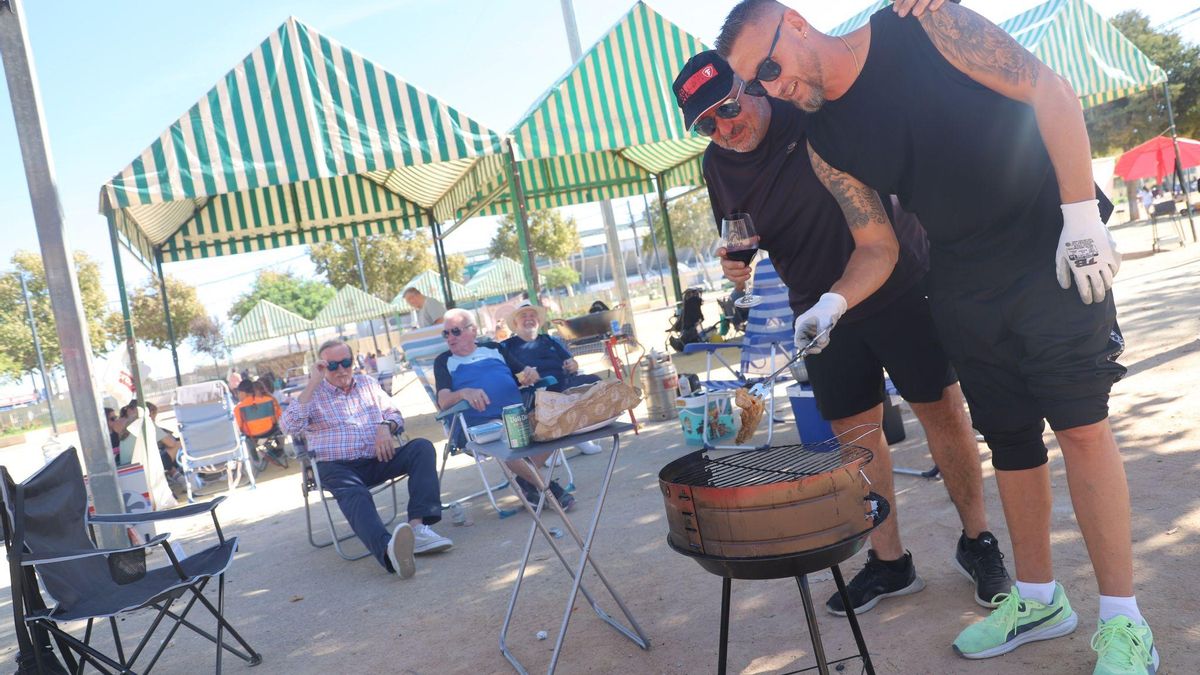 El calor que todavía está haciendo en Andalucía y la falta de lluvia ha hecho que la prohibición de hacer fuego en los parques -ni barbacoas ni cocinas de gas- se traslade a la clásica celebración del perol cordobés por San Rafael. Las familias que han decidido subir a Los Villares lo han hecho tirando de tuppers y al frío, mientras muchos otros han preferido quedarse en El Arenal para poder prender fuego y disfrutar de la barbacoa, sin renunciar al perol cordobés. Tuppers de empanadas, pizzas, tortilla, embutidos, salmorejo, croquetas y pollo empanado han triunfado en Los Villares, donde muchas familias, aunque menos de lo habitual para un 24 de octubre, han decidido juntarse y continuar con la tradición a pesar de no poder cocinar el perol cordobés al fuego, como se suele hacer un día como hoy. "Como no se puede hacer fuego, comida fría", lo resumía así uno de los Rafael de la familia Alcalá, que ha agregado que esa decisión no les ha impedido celebrar el día. "Preferimos juntarnos, que es lo suyo, para seguir la tradición", defiende. Los peroles del día de San Rafael, en imágenes / Víctor Castro Un grupo de amigos, vecinos de mesa de esta familia, han acudido por primera vez por idea del único que es no cordobés en el grupo, un toledano afincado en la ciudad. Lo han decidido así "por la naturaleza, por el entorno, porque aquí se está muy a gusto". Para ellos, la prohibición del fuego no ha sido impedimento, como tampoco lo ha sido para la familia Lucena, que por primera vez ha subido a Los Villares por San Rafael. "Sabemos que la gente viene y pensamos que teníamos que hacer planes nuevos para las niñas, para pasar el rato". Esta familia valora que traer platos fríos "no requiere mucha organización" y que "no hay que traer demasiado equipamiento", así que. La familia Alcalá en Los Villares. / Víctor Castro La familia Franco lo resume así: "lo importante es estar en el campo y todo el día comiendo", aunque sea de tuppers. Los Osorio Savariego, sin embargo, sí han echado de menos hacer el perol, el olor a barbacoa y a sofrito: "estaría mejor si se pudiese hacer fuego, se echa de menos el arroz" pero a cambio han llevado tomates cherry del huerto, croquetas y tortilla con huevos del campo. Se han vivido muchas primeras veces, tanto de amigos en Los Villares como de familias que han trasladado su celebración a El Arenal, como los Bernal, que han cambiado este año el entorno idílico del parque periurbano por el recinto ferial, pero "lo preferimos por el fuego", explican mientras preparan la barbacoa y valoran que "se está bien, a la sombra y no está tan petado". Barbacoas en El Arenal. / Víctor Castro Para las familias Gutiérrez y García, que viven cerca del Campo de la Verdad, El Arenal es el sitio habitual de celebración y valoran que "está todo muy bien adecuado", con las carpas y los servicios instalados por el Ayuntamiento de Córdoba para la ocasión, que ayudan a estar bajo sombra en el descampado con los 28 grados que hacen todavía en la ciudad. La familia disfruta de tapas, barbacoa, tarta, arroz y cubatas, en ese orden, y con la idea "de estar hasta las 2 de la mañana".