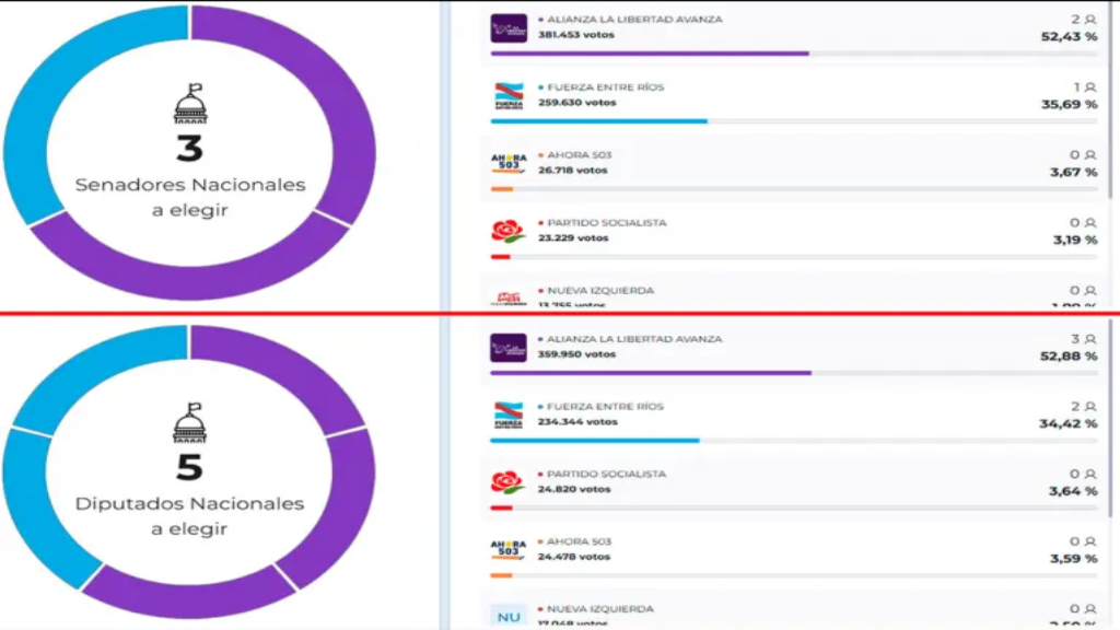 En este marco, los libertarios Joaquín Benegas Lynch y Romina Almeida, junto al peronista Adánb Bahl serán los próximos senadores nacionales por Entre Ríos, a partir del 10 de diciembre cuando asuman sus respectivas bancas. Por otro lado, para diputados, LLA se quedó con 3 de los 5 que estaban en juego: asumirán Andrés Laumann, Alicia Fregonesse y Darío Schneider, mientras que por el lado de la oposición asumirán Guillermo Michel y Marianela Marclay en representación del PJ.