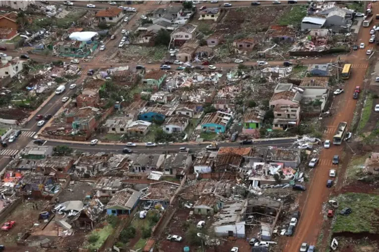 Un tornado arrasó el estado de Paraná, en Brasil, dejando seis muertos, 400 heridos y miles de viviendas destruidas. Declararon el estado de calamidad pública. Un devastador tornado azotó el estado de Paraná en el sur de Brasil, dejando al menos seis muertos y más de 400 personas heridas, según informaron las autoridades locales. El fenómeno, descrito como una "catástrofe sin precedentes", causó una destrucción masiva en el municipio de Rio Bonito do Iguaçu, donde el 90% de las viviendas y edificios comerciales fueron arrasados. Feroz temporal en Brasil con dos tornados que causaron destrucción y decenas de heridos: videos El gobernador de Paraná, Ratinho Júnior, calificó el desastre como el peor en la historia del estado. "Es improbable que alguna casa, o incluso algún edificio comercial, quede en pie. Vimos silos y gasolineras colapsando", dijo el gobernador en declaraciones a la prensa. Los vientos del tornado podrían haber superado los 250 km/h (155 mph), según el Servicio Meteorológico de Paraná (Simepar), lo que provocó la total destrucción de la localidad. Ver esta publicación en Instagram Una publicación compartida por PRIMERA EDICION (@diarioprimeraedicion) Imágenes aéreas del área afectada mostraron un panorama desolador: techos arrancados de los edificios, y algunas estructuras reducidas a escombros. En total, seis personas han perdido la vida, y al menos una sigue desaparecida. Además, los equipos de rescate continúan trabajando en la zona para localizar a más víctimas y asistir a los sobrevivientes. Mas videos salen a la luz del tornado en Brasil, Rio Bonito do Iguaçu, Paraná, Brasil pic.twitter.com/R2UIbmZZC3— dyyy.lannn (@meteo_dylan) November 8, 2025 Daños materiales y estado de calamidad pública Otra postal de los daños. Foto: Parana Central Entre las víctimas fatales, se encuentran tres hombres de 49, 57 y 83 años, y dos mujeres de 47 y 14 años. Otro hombre de 53 años perdió la vida en la cercana ciudad de Guarapuava, también afectada por el tornado. Las autoridades han confirmado que el número de víctimas podría aumentar, ya que los equipos de rescate siguen recibiendo información de familiares y personas desaparecidas. Misiones también se vio afectada por el temporal que azotó el sur de Brasil Como resultado de la magnitud del desastre, se ha declarado el estado de calamidad pública en el estado de Paraná, lo que permitirá al Gobierno adoptar medidas de emergencia, movilizar recursos y solicitar apoyo federal. Además, las autoridades locales están recopilando información sobre las personas desplazadas y las viviendas destruidas, ya que aún no se tiene un panorama completo de la magnitud de la tragedia. Rio Bonito do Iguaçu, no Paraná, totalmente devastada por um tornado. Lembro que, na adolescência, eu assistia a filmes sobre tornados e pensava: “Ainda bem que no Brasil isso nunca vai acontecer.” pic.twitter.com/7DGWFDRv9j— Victor Garcia (@toninhodocall) November 8, 2025 El tornado ha dejado una estela de sufrimiento en la región, con miles de personas sin hogar y muchas de ellas enfrentando serias dificultades para acceder a servicios básicos. Las autoridades locales han pedido ayuda a la población para hacer frente a la emergencia, y las agencias humanitarias ya están trabajando en el terreno para brindar asistencia. Ver esta publicación en Instagram Una publicación compartida por Misiones OnLine (@misionesonline) Riesgo de nuevos fenómenos climáticos Foto: Economis El pronóstico meteorológico también es preocupante, ya que el tornado está asociado a un frente frío que se desplaza por el sur de Brasil. Según el canal Climatempo, el ciclón podría generar ráfagas de viento superiores a los 100 km/h en los estados cercanos de Rio Grande do Sul, Santa Catarina y São Paulo. Se espera que el fenómeno continúe moviéndose por el mar hasta el domingo, afectando también la costa de Río de Janeiro y Espírito Santo. (Con información de CNN)