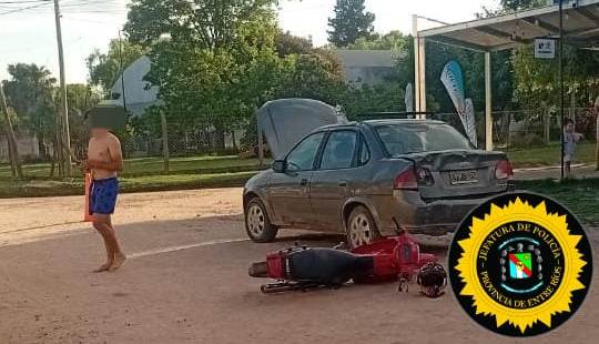 Según se confirmó a Génesis24, un nuevo siniestro vial se registró esta tarde, donde la colisión entre un automóvil y una motocicleta dejó al acompañante del rodado menor con lesiones leves. El hecho ocurrió cerca de las 17:55 horas. Los vehículos involucrados fueron: Un automóvil Chevrolet Classic, conducido por un hombre de 35 años Y una motocicleta Yamaha Crypton, conducida por un joven de 21 años, quien iba acompañado por un hombre de 40 años. El conductor del automóvil resultó ileso tras el impacto. Sin embargo, el acompañante de la motocicleta, un hombre de 40 años, presentó escoriaciones en sus extremidades. El lesionado fue asistido por el servicio de Emergencias VIDA y trasladado al nosocomio local. Tras la intervención del médico policial en turno, se confirmó que las heridas sufridas por el acompañante son de carácter leve. Personal de la Comisaría Cuarta labra las actuaciones de estilo. Comparte esto: Twitter Facebook