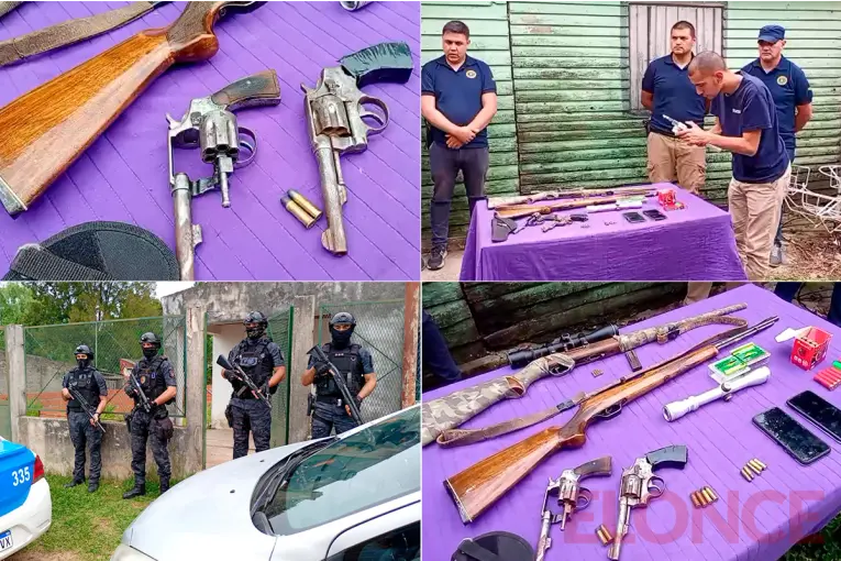 La Policía de Entre Ríos realizó un amplio operativo en Concordia por una causa de venta ilegal de armas y estupefacientes. Participaron más de diez divisiones especiales. Este miércoles la Policía de Entre Ríos realizó 54 órdenes de allanamiento en la ciudad de Concordia, en el marco de una investigación sobre venta ilegal de armas, municiones, estupefacientes y chalecos antibalas, que se concretaba vía redes sociales. El procedimiento fue ordenado por el Juzgado de Garantías a cargo del Dr. Edwin Ives Bastián, con la intervención del fiscal Fabio Zabaleta. Participaron efectivos de todas las divisiones de la Jefatura Departamental Concordia, junto a personal de Drogas Peligrosas, Investigaciones e Inteligencia Criminal de Federación, San Salvador, Colón, Federal, Uruguay e Islas del Ibicuy. También intervinieron unidades de la Dirección de Prevención de Delitos Rurales y los grupos especiales de Feliciano, Villaguay, Tala y GIA. En el lugar estuvieron presentes el Jefe de Policía de la Provincia, Claudio González y el ministro de Seguridad de Entre Ríos, Néstor Roncaglia. El detalle de lo secuestrado durante el operativo Hubo 16 personas detenidas: nueve hombres, seis mujeres y un menor de edad. Se secuestraron las siguientes armas de fuego: Dos armas de fuego tipo rifle carabina cal .22Dos armas de fuego tipo rifle carabina cal .22Un arma de fuego tipo rifle carabina cal .22Un arma de fuego tipo rifle carabina cal .22 (con mira telescópica)Dos armas de fuego tipo revolver cal . 38Un arma de fuego tipo revolver cal . 32Un arma de fuego tipo revolver cal . 22Un arma de fuego tipo revolver cal . 32Un arma de fuego tipo revolver cal . 22Un aire comprimido reformado a calibre .22Un aire comprimido reformado a calibre .22Un aire comprimido reformado a calibre .22Un arma de fuego casera o tumbera calibre a determinar,un arma de fuego tipo revolver cal .22Un arma pistola 9mmUna escopeta calibre 28 Secuestro de cartucheria: 602 cartuchos en total calibre .22,50 cartucho completo .3260 un cartucho completo .3830 cartuchos calibre .12/70 Además del secuestro de un chaleco Balístico y dos equipos de Comunicación HT. En lo que refiere a estupefacientes se incautó: 271,6 gramos de marihuana60 gramos de cocaína10 Plantas de Marihuana de aproximadamente 0,50 cm de alto También secuestraron elementos de cortes, balanza de precisión; 5.400.000 pesos en efectivo; una motocicleta que tenía pedido por robo con fecha del 7 de septiembre de este año; y 130 teléfonos celulares. Megaoperativo en Concordia: hubo 13 detenidos y 15 armas secuestradas Investigación Según indicaron desde la Policía, en lo que va del año se secuestraron en el departamento más de 200 armas de fuego y 20.000 cartuchos, lo que triplica la media anual de años anteriores. A partir de este incremento, la División de Robos y Hurtos inició una investigación de oficio para desarticular una red que comercializaba armas, municiones, drogas y chalecos antibalas a través de redes sociales, con precios que triplicaban los del mercado legal. Las autoridades confirmaron que varias de las armas incautadas coinciden con publicaciones detectadas en internet y serán sometidas a pericias por parte de Policía Científica, mediante análisis con microscopio balístico, para determinar si estuvieron involucradas en hechos delictivos. Mientras que el estudio de los teléfonos celulares secuestrados será clave para ampliar la prueba. Megaoperativo en Concordia: 54 allanamientos por venta ilegal de armas y drogas en redes sociales