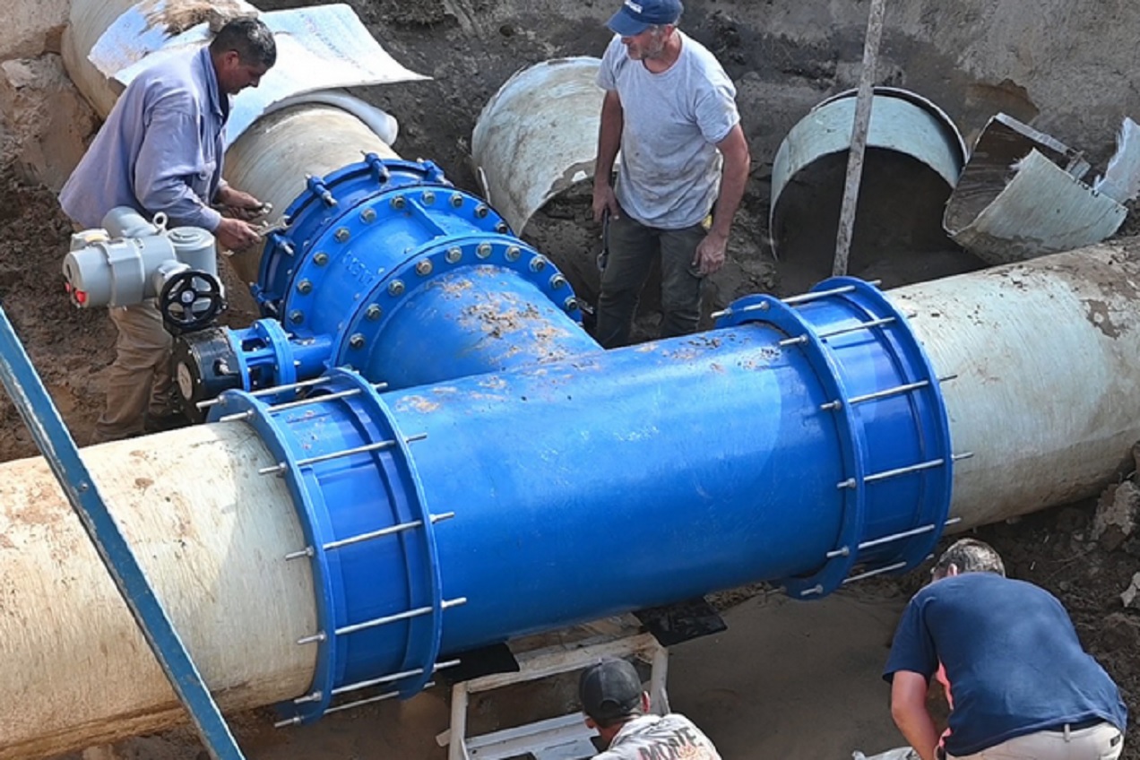 Los trabajos realizados se enmarcan en el Plan de Fortalecimiento del Sistema de Agua Potable de Paraná, con un programa llamado “Obras de Impulsión” que busca mejorar la presión del suministro. Las tareas concluyeron alrededor de las 16.30, tal como estaba programado. El servicio de agua se irá restituyendo con el avance de las horas. La obra, que busca mejorar la provisión de agua potabilizada, es financiada íntegramente con recursos municipales y representa un paso más en una planificación de proyectos, programas y acciones concretas que se han desarrollado desde el inicio de la gestión. La optimización del Centro Distribuidor Ramírez se suma a la colocación de la cañería de 630 mm en el año 2024 para mejorar el servicio en el Este de la ciudad y a la reparación y resolución de problemas de cañerías con la obra de Saneamiento Hídrico. La secretaria de Recursos Hídricos y Gestión Ambiental, Mayra Collante, destacó la celeridad y eficiencia de las tareas realizadas en Planta Echeverría. “La T ya está instalada y estamos aguardando que culminen las tareas de instalación de la bomba de mayor potencia. Se tuvo que hacer una adecuación en el manifold y la vinculación a la nueva bomba. Es una gran tarea que se viene realizando con éxito”, señaló. “Cuando terminemos con la obra de 500 milímetros, vamos a tener dos conexiones de impulsión en paralelo, que conecten nuestra planta potabilizadora con el Centro Distribuidor Ramírez. La impulsión va a tener una menor presión sobre la conducción de 750 mm y, por otro lado, se va a aumentar el caudal impulsado. Esperamos tener un mejor comportamiento y rendimiento”, agregó la funcionaria. Para llevar a cabo las tareas en la Planta Echeverría fue necesario realizar un corte de agua desde las primeras horas de la mañana, por lo que se espera una normalización gradual del suministro. En algunos domicilios se extenderá hasta la madrugada. Intervención La primera acción necesaria fue vaciar la cañería de 750 mm y colocar un ramal T en el manifold de salida del bombeo del suministro potabilizado que alimenta la nueva tubería en ejecución, que se extiende a lo largo de casi 5.500 metros por distintas zonas de la ciudad, hasta la planta y cisterna de avenida Ramírez. Para no requerir dos cortes de agua en momentos distintos, se aprovechó la instancia realizar una obra de renovación y modernización del equipamiento en la sala de bombas de la planta Echeverría: se colocó una electrobomba recientemente adquirida por la Municipalidad, que permitirá dar sustentabilidad, mayor eficiencia y productividad en la administración y gestión del servicio público.