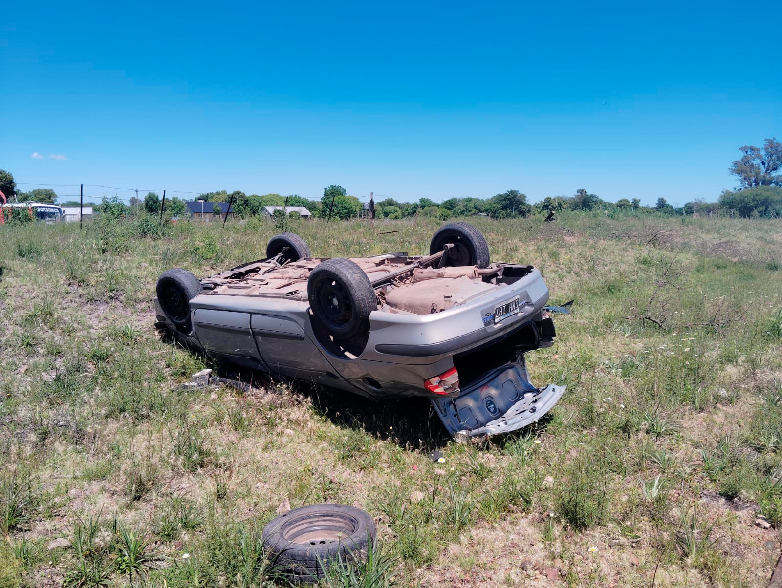 Este jueves, poco antes de las 11, un violento siniestro vial se registró sobre la Ruta 39, en la zona de Rocamora, donde la traza presenta una curva pronunciada. Un vehículo perdió el control, salió de la calzada y avanzó casi 200 metros por la banquina hasta volcar, quedando con las cuatro ruedas hacia arriba, a escasa distancia de las vías del ferrocarril. Un trabajador de ENERSA, Sergio Bach, que pasaba por el lugar, fue el primero en asistir al único ocupante del rodado. El hombre no podía salir por sus propios medios, ya que una de sus extremidades había quedado atrapada entre los hierros retorcidos del auto. Tras el aviso a los servicios de emergencia, una dotación de Bomberos Voluntarios de Basavilbaso arribó rápidamente, se sumaron otras dos, una del Cuartel central y otra del Destacamento Rocamora. En pocos minutos los Bomberos lograron liberar al conductor, quien fue trasladado de inmediato al hospital “Sagrado Corazón de Jesús” para su atención. De acuerdo al relato del automovilista, que se identificó como Ariel Velézquez (hijo del músico entrerriano Víctor Velazquez) viajaba, en un Renault Megane, desde Rosario del Tala hacia Basavilbaso cuando —sin poder precisar qué— algo se cruzó en su trayectoria, lo que lo llevó a realizar un brusco volantazo, perder totalmente el control y volcar debido a las irregularidades del terreno. Funcionarios de la delegación Rocamora de la Policía de Entre Ríos realizan tareas para tratar de establecer las formas y circunstancias en que se produjo el siniestro. Crédito: FM Riel