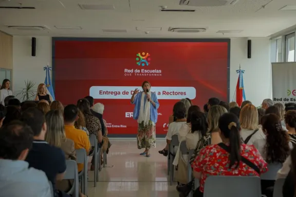 En el Mirador TEC de Paraná se realizó la entrega de diplomas a miembros de equipos directivos que finalizaron la primera cohorte de la Actualización Académica en Gestión Estratégica y Liderazgo Pedagógico, desarrollada en el marco del Plan Educativo Provincial y de la Transformación de la Escuela Secundaria. miércoles 19 de noviembre de 2025 | 19:00hs. El programa Red de Escuelas que Transforman ofrece formación interdisciplinaria en Gestión Estratégica y Liderazgo Pedagógico, Matemática, Lengua, Educación Digital, Aprendizaje Basado en Proyectos, Robótica Educativa, Trayectorias Educativas y Proyecto de Vida. Iniciado en 2024 como una colaboración entre el Consejo General de Educación (CGE), la Fundación Banco Entre Ríos y las Fundaciones Grupo Petersen, hoy alcanza a 185 instituciones escolares y 1.100 docentes entrerrianos. "Es emocionante tener hoy a tantos rectores y al equipo presente. Quiero agradecer profundamente a quienes nos vienen acompañando desde hace tiempo en este camino, pensando la escuela desde otro lugar junto a grandes educadores. Este proyecto fue verdaderamente federal, con la participación de los 17 departamentos. Sabemos que sin un equipo que crea que el cambio es posible, nada de esto sería viable. Somos conscientes de que aún hay mucho por mejorar, y sabemos que trabajar con otros es lo más valioso", destacó la presidente del CGE, Alicia Fregonese. Y agregó: "Ustedes son los protagonistas del sistema educativo, nosotros solo acompañamos y ya transitamos dos años de esta transformación. Fue maravilloso ver cómo se construyó esta red, que hoy es una comunidad. Ojalá este diálogo siga creciendo, habrá momentos difíciles, pero juntos siempre es más fácil. Les puedo asegurar que desde el organismo educativo vamos a seguir apoyando esta iniciativa. El presentismo de esta actualización académica durante estos dos años fue altísimo, por eso felicitaciones a ustedes, al equipo de Somos Red y al equipo del CGE". "Valoramos el esfuerzo y dedicación realizado por cada uno de ustedes, ello nos inspira a continuar abriendo caminos para profundizar la transformación de la educación", afirmó la presidente de las Fundaciones Grupo Petersen, Hilda Callegaro. La actividad incluyó la presentación musical de docentes y estudiantes del Instituto San José D-46 de San José de Colón, charlas inspiracionales de directivos, docentes y estudiantes, y reflexiones sobre los logros alcanzados en dos años de trabajo. Culminó con la entrega de diplomas, un momento cargado de emoción, reconocimiento y alegría compartida, que selló el cierre de un proceso de formación para la transformación y la mejora de la escuela secundaria en la provincia. (APFDigital)