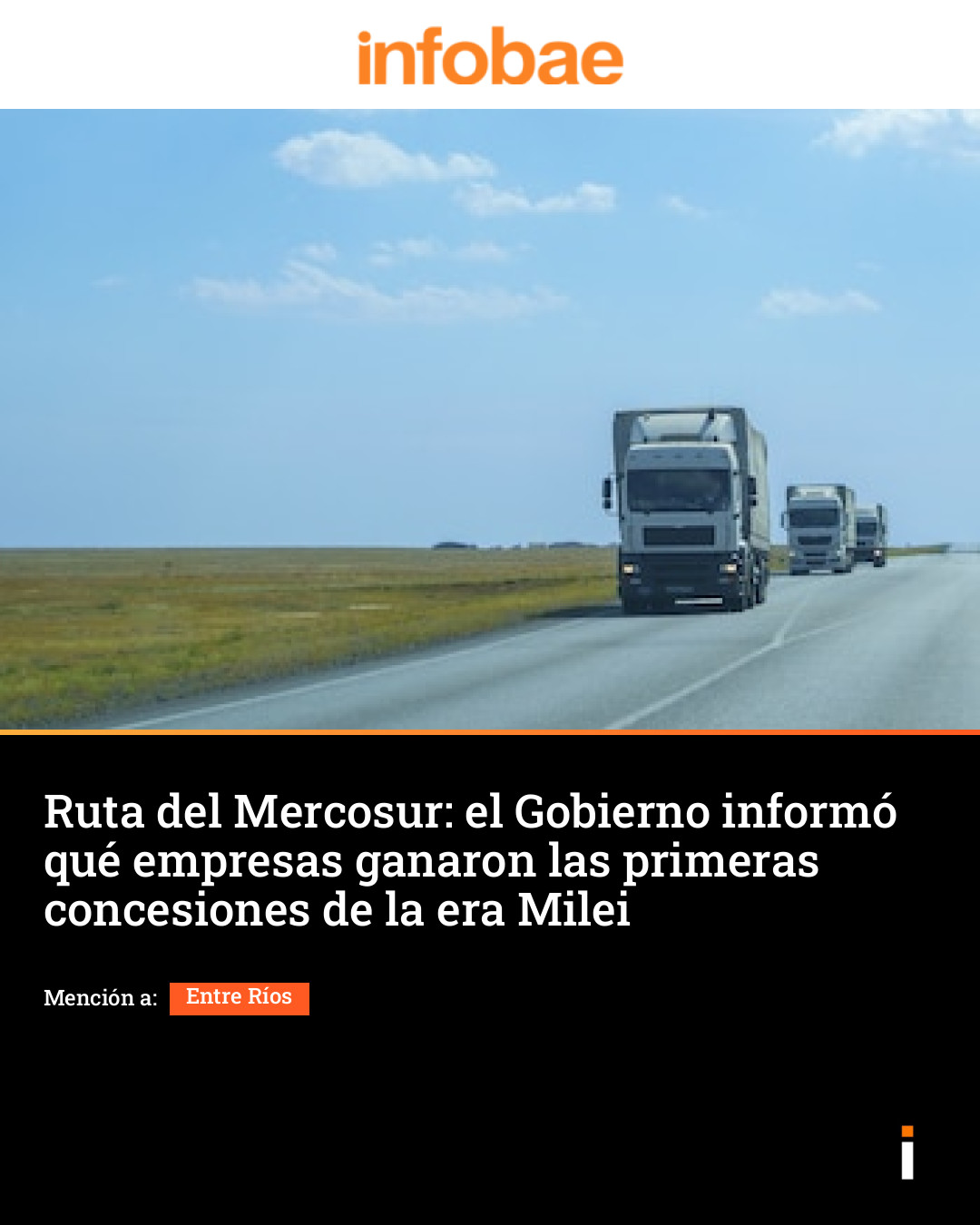 El Gobierno oficializó este miércoles las adjudicaciones de las concesiones de la primera etapa del proceso para privatizar rutas nacionales, las primeras de la gestión de Javier Milei. La fase uno abarca 741 kilómetros de trazado estratégico actualmente gestionado por el Estado, que pasarán a operar empresas privadas y se financiarán exclusivamente con peajes, es decir, sin subsidios. La Resolución 80/2025 de la Secretaría de Transporte del Ministerio de Economía adjudicó la concesión para la explotación, administración y mantenimiento de los Tramos Oriental y Conexión que componen la Etapa I de la Red Federal de Concesiones (RFC). En el caso del Tramo Oriental, la adjudicataria es Autovía Construcciones y Servicios S.A., que gestionará las rutas nacionales 12, 14, 135, A015 y 117. Este tramo atraviesa Buenos Aires, Entre Ríos y Corrientes. El Tramo Conexión quedó en manos de Obring S.A., Rovial S.A., Edeca S.A., Pitón S.A. y Pietroboni S.A. e incluye el Puente Rosario–Victoria (RN 174), enlace clave entre Entre Ríos y Santa Fe. La Etapa I integra más de 700 kilómetros vinculados al corredor del Mercosur, fundamental en el comercio y la integración con Brasil y Uruguay. El corredor conecta cuatro pasos fronterizos y el Puente Rosario-Victoria sobre el Río Paraná, facilitando el acceso a puertos y polos productivos del Gran Rosario, lo que permitirá potenciar exportaciones y el desarrollo logístico. Según informó Vialidad, “en etapas posteriores, la Red Federal de Concesiones sumará nuevos tramos hasta superar los 9.000 kilómetros. El sistema implementado prescindirá de subsidios públicos, a diferencia del modelo anterior, que se mantenía con aportes estatales y no ofrecía beneficios concretos para los usuarios”. El Gobierno avanza con la segunda Etapa de la Red Federal de Concesiones, que otorga la licencia de rutas nacionales y autopistas a operadores privados. El ministro de Economía, Luis Caputo, anunció la semana pasada que pronto lanzarán la licitación pública nacional e internacional para dos nuevos tramos. Se trata del Tramo Sur–Atlántico–Acceso Sur de 1.325 kilómetros (RN 3, 205, 206 y autopistas Riccheri, Newbery y Ezeiza –Cañuelas) y el Tramo Pampa de 547 kilometros sobre la RN 5 (Luján – Santa Rosa). “En total, más de 1.800 km pasarán a ser gestionados por el sector privado”, escribió en la red social X. El Gobierno ofreció financiamiento por hasta 56.000 millones de pesos o el 70% del monto contractual, bajo esquema UVA +2% y con plazos de hasta 6 años para el repago y un año de gracia. El banco presentó un esquema fiduciario de garantía y fondeo para las empresas adjudicatarias, configurando una herramienta crediticia optativa para el ganador. La primera etapa del RFC había sido la consulta pública por el Corredor 18, por unos 700 kilómetros, que abarca la extensión de la Ruta del Mercosur. La tercera etapa contempla la concesión de otros 4.170 kilómetros divididos en seis tramos. En total, se licitarán 9.342,04 kilómetros distribuidos en dieciséis tramos que representan el 20 por ciento de la red vial nacional, pero concentran el 80 por ciento del tránsito. En esta segunda etapa del RFC se buscará que varios tramos que estaban gestionados por Corredores Viales pasen a ser de concesión privada. Es el caso del tramo Acceso Sur en las autopistas Ezeiza-Cañuelas, Riccheri y Newbery. La compañía estatal es una de las ocho firmas que quedaron sujetas a privatización en la Ley Bases y la intención del Gobierno es cerrarla una vez que sean adjudicados todos los caminos bajo su control. Según datos oficiales recogidos por Infobae, Corredores Viales contaba con 3.307 empleados al cierre de junio. Esta empresa es una de las tres sujetas a privatización según la Ley Bases, dentro de un total de ocho. Cerró el primer semestre con un superávit financiero de $5.200 millones, lo que implicó que no requiriera transferencias del Tesoro nacional.