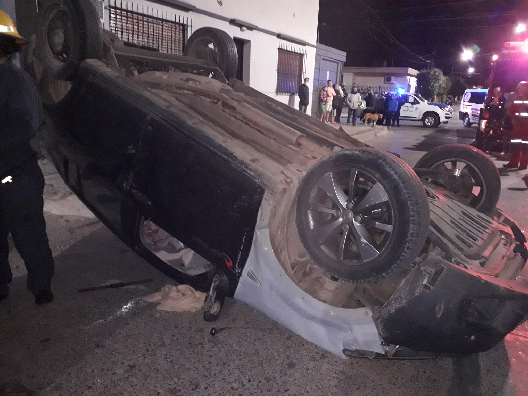 En horas de la noche de este miércoles, siendo las 22.40 aproximadamente, personal de Bomberos Voluntarios Concepción del Uruguay fueron alertados sobre un accidente que había ocurrido en la ciudad. De acuerdo a los primeros datos que Génesis24 pudo saber, este ocurrió en Combatientes de Malvinas, entre Mitre y Artusi, donde a raíz de un choque y vuelco, personas habían quedado atrapadas dentro del vehículo. Hacia dicha intersección los trabajadores se dirigieron con el Móvil 15 Unidad Rescate, encontrándose allí con dos personas, las cuales ya se encontraban fuera del rodado, siendo una de ellas un hombre de unos 60 años, a quien el test de alcoholemia le habría arrojado resultado positivo (2.07 de alcohol en sangre) y debió ser asistido en el lugar por personal de Vida Emergencia, mientras que su compañero, de unos 45 años, debió ser trasladado hasta el hospital Urquiza para su mayor atención, conociéndose que habría resultado con lesiones leves. En cuanto a lo material, Génesis24 pudo saber que el vehículo protagonista fue un Renault Sandero, dominio LOT153, el cual quedó con daños importantes, mientras que el otro automóvil afectado en dicho siniestro fue un Peugeot 206, el cual se encontraba estacionado al momento de la colisión, y que este terminó impactando contra camioneta. Intervinieron además Bomberos Voluntarios y personal de la División Tránsito y de la Policia de Entre Ríos. Comparte esto: Twitter Facebook
