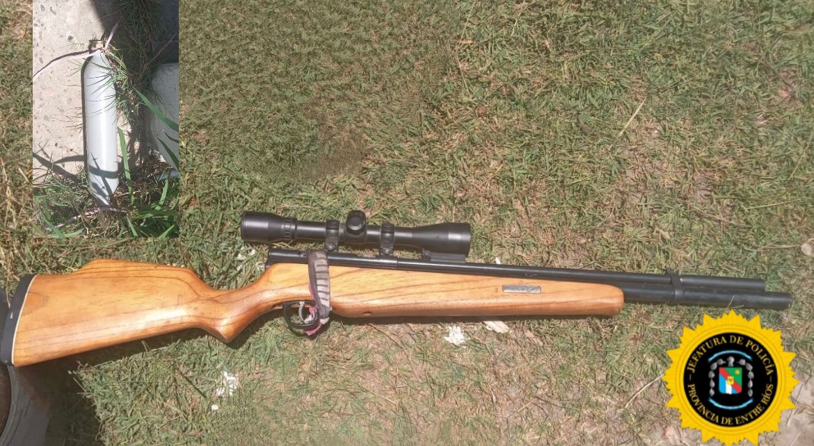 En el mediodía de este viernes, personal de Comisaría Chajarí recibe un llamado telefónico de ocasionales transeúntes, informando que unos hombres estaban en calle 17 de Octubre al 1750 exhibiendo un arma tipo rifle o similar. Constituido el personal en el lugar, y con todas las precauciones que para este caso ameritaba, se entrevista a la persona que tenía en su poder lo que parecía ser un arma larga, de fuego, a quien se entrevista e identifica, resultando ser mayor de edad, quien manifiesta que era un arma neumática del tipo CO2, con mira telescópica el cual había adquirido y se lo estaba mostrando a sus amigos en la vereda. Informado a la fiscalía en turno dispone el secuestro del elemento, y que el ciudadano propietario de la misma, sea citado a sede judicial.
