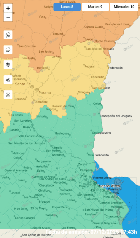 Compartilo con El Servicio Meteorológico Nacional advierte sobre un frente de inestabilidad que afectará a gran parte de la provincia este lunes y martes. Se esperan precipitaciones acumuladas de hasta 60 milímetros, ráfagas intensas y posible caída de granizo en diez departamentos. El Servicio Meteorológico Nacional (SMN) actualizó sus proyecciones para el inicio de la semana, confirmando la vigencia de un alerta por tormentas en Entre Ríos. El organismo oficial estableció un nivel de advertencia amarillo, lo que implica fenómenos con capacidad de daño y riesgo de interrupción momentánea de actividades cotidianas. Según el reporte emitido, la inestabilidad climática se desarrollará en dos etapas. Durante la jornada de este lunes, el área de cobertura abarca los departamentos de Paraná, Concordia, Diamante, Federal, Federación, Feliciano, La Paz, Nogoyá, San Salvador y Villaguay. Para el martes, el fenómeno se concentrará principalmente en la zona noreste, afectando a Concordia, Federal, Federación, Feliciano y San Salvador. Características del fenómeno Los informes técnicos indican que la región será afectada por lluvias persistentes y tormentas de variada intensidad. Si bien no se descartan mejoramientos temporarios, se prevé que algunos focos sean localmente fuertes. Entre los riesgos asociados, el SMN destaca la abundante caída de agua en cortos períodos, intensa actividad eléctrica y la ocasional caída de granizo. Rige un alerta por tormentas en Entre Ríos. El SMN prevé lluvias, ráfagas y granizo para lunes y martes. Asimismo, se advierte sobre la presencia de ráfagas de viento que podrían alcanzar los 70 km/h, un factor que suele generar complicaciones en la vía pública y el tendido eléctrico. En cuanto a las precipitaciones, se estiman valores de acumulación entre 40 y 60 milímetros, cifras que podrían ser superadas de manera puntual en las zonas más críticas. Recomendaciones oficiales Ante este escenario, las autoridades provinciales y de defensa civil solicitan a la población mantener la precaución sin caer en el alarmismo. Se recomienda evitar la disposición de residuos en la vía pública y retirar objetos que puedan obstruir el escurrimiento del agua. Asimismo, se sugiere suspender actividades al aire libre durante los picos de tormenta y no buscar refugio cerca de árboles o postes de electricidad que presenten riesgo de caída. Para minimizar accidentes por descargas eléctricas, se insta a permanecer alejados de ríos, lagunas y piletas. Finalmente, se aconseja tener preparada una mochila de emergencias con documentación, linterna y radio, como medida preventiva estándar ante eventos meteorológicos adversos.