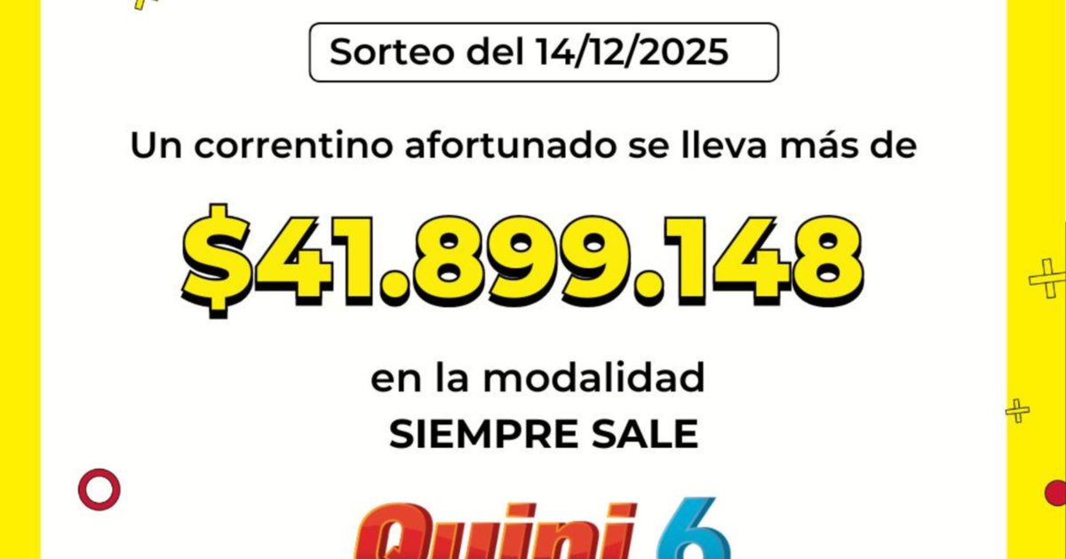 Un apostador de la ciudad Capital se convirtió en millonario al ganar la modalidad "Siempre Sale" del Quini 6. La jugada ganadora fue realizada en la agencia oficial N° 839 de Capital, donde el ganador apostó por los números 02 - 13 - 31 - 40 - 45 y obtuvo un pozo de $41.899.148. Es así que el Quini 6 volvió a repartir un premio millonario, esta vez con destino correntino. La identidad del ganador, como es común, se mantiene en reserva, aunque la provincia celebra un nuevo golpe de suerte.