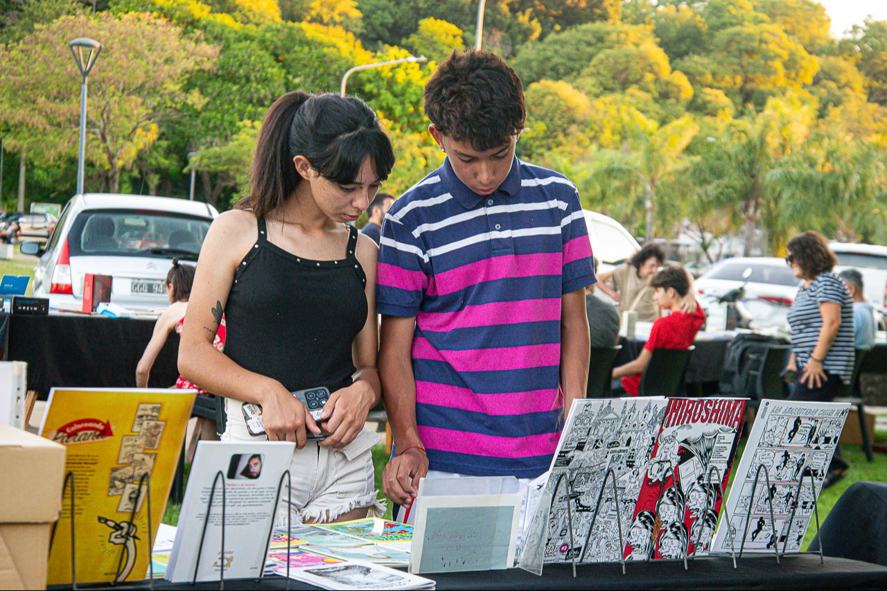 La Municipalidad de Paraná llevó a adelante dos propuestas de venta de publicaciones en los espacios culturales Rosa y Dorada y en el Juan L. Ortiz. La iniciativa contó con la participación de 12 librerías, editores independientes y editoriales de la ciudad. El Karaoke Literario organizado por la Editorial Municipal reunió a librerías locales y al público lector en dos jornadas especiales para comenzar a vivir el espíritu festivo, rodeados de palabras e historias. La propuesta fue pensada para escuchar en voz alta fragmentos de los libros que se pueden regalar para esta Navidad. “Lo hemos denominado Karaoke Literario porque la idea es leer en voz alta las historias que nos cuentan los libros. Es en el marco de la política que impulsa la gestión de Rosario Romero de promover la lectura y acercar al público lector con los libros”, señaló la coordinadora de la Editorial Municipal, Marcela Pautaso. La feria estuvo integrada por 12 stands de libreros independientes y editoriales locales, además de la Editorial Municipal con el catálogo de producciones propias. “Estas ferias se desarrollan con el objetivo de que se aproximan las fiestas y cuando uno no sabe qué regalar lo mejor es regalar historias. En este caso, historias a través de los libros que tanto librerías locales y editoriales exponen en esta propuesta”, añadió Pautaso. Gretel Schroeder, de la editorial y librería La Ventana Ediciones, destacó: “Es lindo encontrarse con los compañeros libreros y editores de la ciudad, intentando siempre proteger la cultura a través de los libros. Lo importante de estas iniciativas es poder transmitir y sostener los libros y las producciones locales”. Durante la jornada del domingo, en el Juan L. Ortiz, el Coro de la Ciudad le puso su toque artístico a la propuesta literaria.