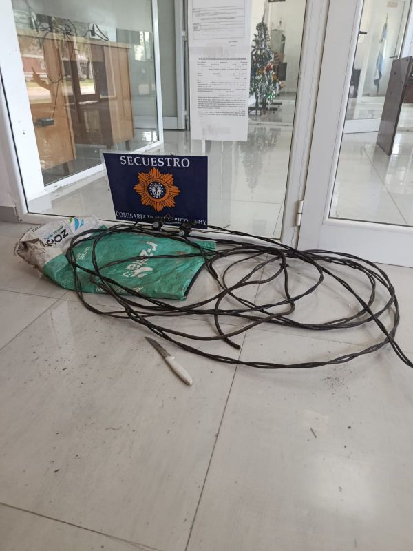 Personal de la Comisaría 6ª de Malabrigo intervino este sábado al mediodía tras un llamado telefónico que alertaba sobre una persona que estaría cortando cables del alumbrado público en la plazoleta Islas Malvinas del barrio Estación. Al arribar al lugar, los efectivos identificaron a un sujeto cuyas características coincidían con las descriptas, quien se encontraba sentado en un cantero junto a una bolsa que contenía cables preensamblados de color negro. Se convocó a personal municipal, que constató que los elementos pertenecerían a la red de alimentación eléctrica de las farolas del espacio público. Ante esta situación, se procedió al secuestro preventivo de los cables y de un cuchillo tipo serrucho. El involucrado, vecino de esta ciudad, fue trasladado a sede policial en calidad de aprehendido, en una causa caratulada prima facie como robo calificado, con intervención del fiscal en turno.