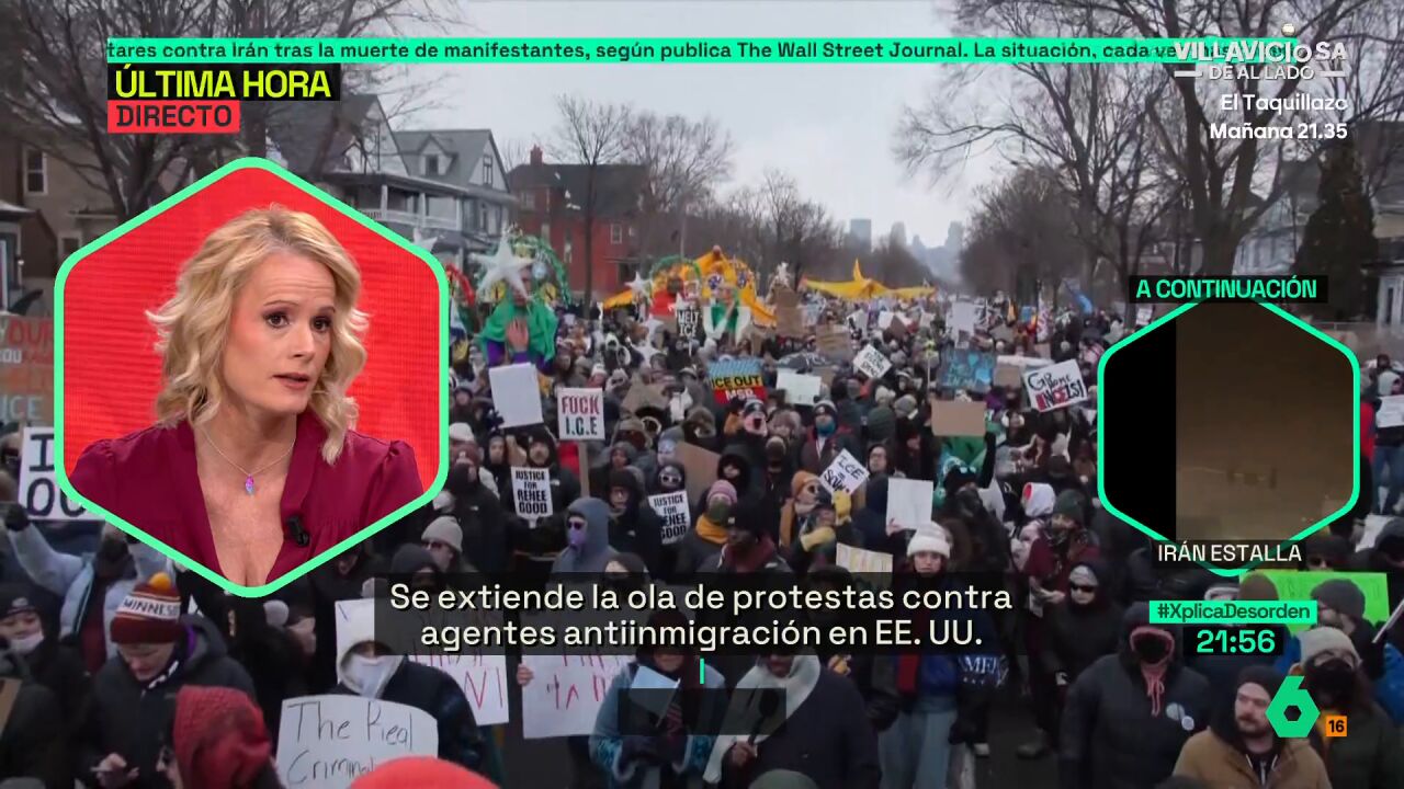 Resumen IA supervisado Las manifestaciones en Estados Unidos continúan tras el asesinato de Renee Nicole Good en Minneapolis por agentes del ICE, generando indignación global contra la violencia policial. Renee, poetisa y madre de tres, murió al recibir tres disparos cuando intentaba arrancar su coche. El incidente, grabado por un agente, ha sido comparado con casos como el de George Floyd, que impulsaron el movimiento 'Black Lives Matter'. Aunque las protestas actuales no han alcanzado la violencia de Los Ángeles en 1992, podrían ser el inicio de una nueva ola de movilizaciones. Roger Senserrich advierte sobre la preocupante polarización actual. * Resumen supervisado por periodistas. Las manifestaciones y movilizaciones en Estados Unidos no cesan. El asesinato de Renee Nicole Good en Minneapolis (Minnesota) a manos del Servicio de Inmigración y Control de Aduanas (ICE) ha desatado una ola de indignación global contra la violencia policial. Durante la noche de este viernes, estadounidenses rodearon el hotel donde se alojan agentes de este Cuerpo en la ciudad del suceso para pedir justicia entre silbatos, pancartas y gritos. Los manifestantes golpearon las puertas de este hotel hasta que finalmente consigueron entrar. Después, los agentes comenzaron a disparar a los asistentes para disuadirlos. Esta mujer de 37 años era poetisa, madre de tres hijos y murió tras recibir tres disparos por parte de un agente cuando se disponía a arrancar su coche. Según las imágenes que se han captado del momento, varios vehículos federales cercaron a esta mujer. Por detrás y a pie, se acercó un agente que estaba grabando todo con su móvil, posteriormente se convertiría en el tirador. Al mismo tiempo, por un lado, otro agente rodeó a la víctima y por el otro, dos oficiales se bajaron del coche patrulla y le pidieron a Renee que se bajara del suyo. "Salga del maldito coche", le gritaron. Según el presidente del país, Donald Trump, la fallecida era "una agitadora, probablemente pagada". Este triste y polémico suceso ha recordado a otras protestas que intensificaron la crítica hacia la Policía en EEUU, como las del movimiento 'Blacks Lives Matter'. Estas arrancaron tras la muerte de George Floyd en 2020, cuando el vídeo de un policía asfixiándolo dio lugar a una oleada de movilizaciones contra la violencia policial y el racismo. Dolor y combate callejero Pero esa explosión social tiene un precedente claro y se originió en Los Ángeles, en 1992, cuando los policías que golpearon brutalmente al taxista Rodney King fueron absueltos. A raíz de ello, la ciudad ardió durante días. Estos fueron momentos de furia intensa, dolor y combate callejero donde murieron 63 personas y hubo más de 3.000 heridos. Es cierto que las protestas por la muerte de Renee Good no han alcanzado la violencia de las de Los Ángeles hace 30 años, pero este podría ser el comienzo de una oleada de movilizaciones, algunas de ellas violentas. Roger Senserrich, escritor y analista en el boletín 'Four Freedoms.es', explica que "la polarización que se está viendo estos días es realmente preocupante": "Tienes al presidente describiendo un vídeo que no existe y describiendo una realidad que no existe para justificar la injustificable".