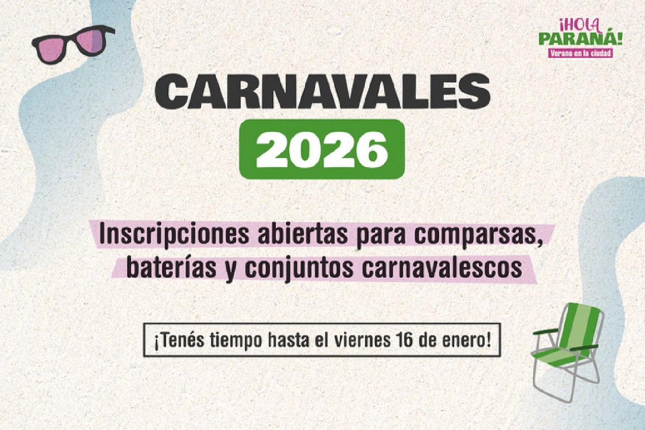 La Municipalidad de Paraná informa que se encuentra abierta la inscripción para las agrupaciones que deseen participar de los Carnavales Oficiales de Paraná 2026, que se desarrollarán del 13 al 17 de febrero de 2026 en calle Salvador Maciá, entre Artigas y Coronel Uzin, en la ciudad de Paraná. La convocatoria está dirigida a agrupaciones interesadas en formar parte de las categorías competitivas oficiales: Comparsas (Categoría A y Categoría B), Baterías y Grupos Carnavalescos. La inscripción se realizará a través de un formulario online y permanecerá abierta hasta el 16 de enero de 2026. Las agrupaciones deberán completar el formulario correspondiente y ajustarse a lo establecido en el Reglamento Oficial de los Carnavales de Paraná 2026, disponible para su consulta a través del enlace habilitado. Previo a la carga de la información, será necesario contar con la documentación requerida en formato PDF: Carpeta de Presentación de la Agrupación, frente y dorso del DNI del titular de la cuenta bancaria que recibirá los fondos en un solo documento, y constancia de CBU emitida por la entidad bancaria. Para realizar consultas o solicitar más información, las personas interesadas pueden comunicarse al correo electrónico carnavalesoficialesparana@gmail.com