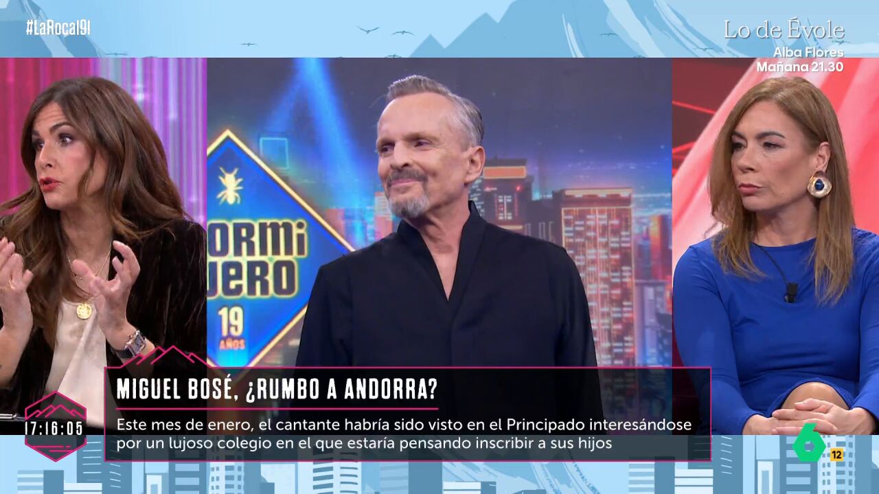El aclamado y polémico cantante Miguel Bosé dejaría México próximamente para mudarse a Andorra. Así lo aseguró la periodista Lorena Vázquez, que explicó que el artista había sido visto realizando la prescripción de sus hijos en uno de los colegios "más elitistas" de la zona. Ante esta noticia, que ha sido comentada en diferentes medios y programas, como en 'La Roca', Juan del Val ha opinado que "cada uno puede vivir donde le dé la gana": "No me aventuro a decir que sea por los impuestos", dice en referencia a las críticas a influencers que han decidido mudarse por un tema económico. "Quizá le parezca un sitio estupendo", añade. Así, Silvia Taulés indica que en el país se ha creado "una comunidad de gente con mucho dinero que ha creado restaurantes", entre otros. Por su parte, Nuria Roca contesta firme y sostiene que irse a vivir a Andorra va de la mano de "razones concretas". "No nos hagamos los inocentes. Si alguien se va a vivir a Andorra es por razones concretas, es un sitio maravilloso sobre todo para aficionados del ski. Pero Andorra es muy pequeño y clautrofóbico", sentencia. Además de haber visto al cantante recorriendo las calles de Andorra, Vázquez indica que también estaría en contacto con una agencia inmobiliaria para encontrar una vivienda que cumpla con todas sus necesidades y gustos.