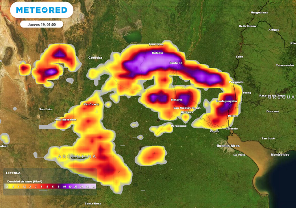 Las tormentas se intensificarán y tenderán a organizarse en la porción centro-este del país entre la noche del miércoles 18 y las primeras horas de este jueves 19. La actividad convectiva será destacada desde un par de horas previas a la medianoche, sobre todo en el sur de Santa Fe, sudeste de Córdoba, sudoeste de Entre Ríos, y el extremo norte de La Pampa y de la provincia de Buenos Aires. En torno a la medianoche, durante la trasnoche y madrugada del jueves 19, se espera que las tormentas se organicen e intensifiquen (pudiendo llegar a ser puntualmente severas), avanzando sobre el resto de Córdoba, centro de Santa Fe y Entre Ríos (incluyendo a las últimas dos ciudades capitales bajo alerta). Es probable que este evento deje lluvias destacadas durante la madrugada y parte de la mañana del jueves (con acumulados superiores a los 50 mm en cortos periodos, según ECMWF), teniendo potencial para generar algunos anegamientos locales, ocasional caída de granizo, y ráfagas de viento acompañando a estas tormentas organizadas con intensidad de fuerte a severa. Jueves 19 con cambios térmicos y más tormentas Desde la madrugada y primera mañana se esperan chaparrones y tormentas aisladas en la PBA, sobre todo en el sudeste y norte provincial, incluyendo al AMBA con el regreso de chaparrones y tormentas puntuales desde la madrugada, durante la mañana y un par de horas pasado el mediodía, con un 50 % de probabilidad, según ECMWF. Por la tarde, las tormentas avanzarán sobre el este de Entre Ríos, norte de Santa Fe, Corrientes, Misiones, Santiago del Estero, Tucumán, La Rioja, Catamarca y el este de Chaco y de Formosa, desplazando el aire sofocante instalado en el NEA. En cuanto a la Patagonia, el tiempo estable domina en el norte y franja este con un marcado ascenso de la temperatura llegando a +30 °C. Por otro lado, bajas presiones cruzarán por el Pasaje de Drake este día, dejando ambiente inestable con algunas lluvias en el extremo sur, ventoso del oeste con ráfagas +60 km/h para buena parte de Santa Cruz y Tierra del Fuego. El último día hábil de la semana, viernes 20 de febrero, presentará ambiente húmedo e inestable con algunas tormentas en el NOA y Cuyo. Nubosidad variable en la franja centro-este con anomalías de temperatura negativas para febrero. Mantenete informado siempre con las últimas actualizaciones del pronóstico del tiempo que vayan surgiendo en Meteored Argentina.