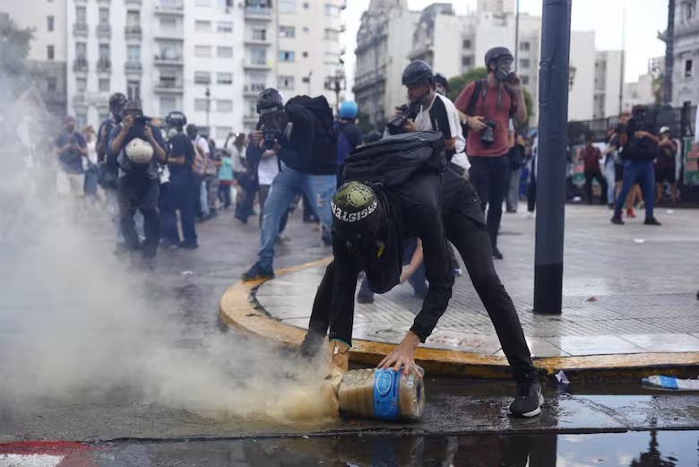 La protesta frente al Congreso en rechazo a la reforma laboral que trata hoy Diputados se desarrolló sin sobresaltos hasta las 16 horas, cuando comenzaron los primeros incidentes entre las fuerzas de seguridad y un pequeño pero creciente grupo de manifestantes que arrojó botellas y agitó las vallas del Congreso, sobre la avenida Rivadavia. El clima permanece inestable, con la policía intentando disuadir a los grupos plantados en el vallado. A las 18.30, la policía inició una avanzada con motos sobre la plaza para dispersar la manifestación. Las más leídas Cuando se iniciaron los primeros enfrentamientos, de ese lado de la plaza del Congreso, donde ya no quedaba rastro del paso de la izquierda, se había ubicado Gendarmería, detrás del vallado que separaba la plaza de la avenida Entre Ríos. Primero con un cordón espaciado de efectivos, que permaneció inactivo durante el inicio de la protesta, y luego, tras los primeros incidentes, con un carro hidrante, que sigue lanzando descargas de agua para disuadir al primer frente de la protesta. El agite inicial corrió por cuenta de un exiguo grupo de personas. Algunas de ellos, a cara descubierta, intentaron hacer caer las vallas e hicieron volar la primera tanda de botellas y plásticos varios. Con la respuesta de Gendarmería, el grupo primero se desarmó, pero luego terminó ampliándose. La secuencia se inició cerca de las 15.30. Para ese entonces, la fisonomía de la convocatoria sobre la avenida Rivadavia había cambiado por completo, luego del retiro de la principal columna de la izquierda, encabezada por el PTS. Fue tras una breve intervención de la diputada Myriam Bregman, que incluyó dardos a la CGT, por realizar un paro tardío. Con la salida de la izquierda, que ordenó su convocatoria en torno a un acto y una radio abierta, y no tenía previsto prolongar su estadía más allá de la media tarde, ese lado de la plaza quedó diezmado, con apenas un puñado de grupos disgregados, sin consignas partidarias, y con casi ningún manifestante frente al vallado, el habitual eje de conflicto con la policía. Los gremios, en tanto, no pasaron la mitad de la plaza y se mantuvieron alejados de la zona más caliente. A las 16, sin embargo, una pequeña ola de rabia se adueñó del los manifestantes que quedaron allí. Comenzaron a golpear el vallado y unos carteles de publicidad y siguieron con la primera lluvia de botellas. Los más exaltados fueron acusados por otros de infiltrados. Por momentos, intentaron frenarlos. Ricardo, un jubilado de 89 años que se ubicó lejos del vallado, hizo arder su garganta con insultos a la primera fila de manifestantes, que probaba la resistencia del vallado. Son todos canas, servicios, siempre fue igual, señalaba. Con la tensión ya en aumento, comenzó un movimiento de ida y vuelta entre los manifestantes y el hidrante de Gendarmería. Las ráfagas del camión empujaban al grupo unos metros para atrás, pero a los pocos minutos este se rearmaba de nuevo frente al vallado. Para ese entonces, ese primer bloque de protesta se había consolidado. La danza entre el hidrante y los manifestantes se extendió por un cuarto de hora, hasta que la Gendarmería añadió a su ofensiva granadas de gas, que desarticuló a los manifestantes. Fuente: La Nación