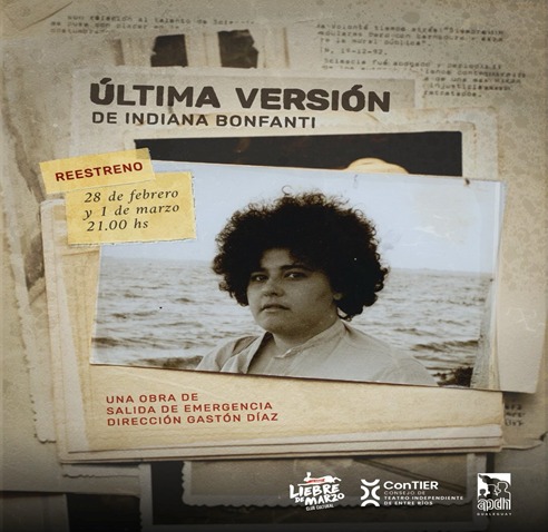 DOS ÚNICAS FUNCIONES EN LIEBRE DE MARZO DE Se re-estrena esta obra con dramaturgia y actuación de Indiana Bonfanti y la dirección de Gastón Díaz, la puesta en escena será el SÁBADO 28 DE FEBRERO y el DOMINGO 1 DE MARZO A LAS 21,00 HORAS. Esta obra ha sido seleccionada para representar a Gualeguay en el FESTIVAL INTERNACIONAL DE TEATRO LATINOAMERICANO LATITUDS, de Barcelona en el mes de mayo de 2026. Es un intercambio cultural con la red catalana ON el Teatre Batega(OTB). Ellos estuvieron actuando en el Festival Internacional de teatro de Gualeguay en el año 2025. La actriz manifiesta: Voy a contar una historia personal, una parte de mi vida. Me pregunté muchas veces cómo hacerlo. Le pedí ayuda a la simpleza de la vida cotidiana: a los sabios de cuatro patas, a mi cocina de piso damero y olor a pan, y a un puñado de objetos, mojones en la historia, que aún conservo. Propongo un encuentro humano y perruno. Porque tanto amor merece su homenaje. Vuelvo a los setenta, para recordar, para no repetir y para honrar la memoria. Indiana posee una destacada formación teatral, en entrenamiento actoral y dramaturgia, con renombrados docentes de estas disciplinas; en esta oportunidad vuelve a la escena gualeya, como actriz y autora, bajo la dirección de Gastón Díaz. Con un registro testimonial, de un trabajo de investigación histórico-periodístico de los hechos ocurridos durante la última dictadura militar, ficcionalizado por razones dramatúrgicas, en las ciudades de Santa Fe y Córdoba. El binomio de ACTRIZ Y DIRECTOR, resulta muy atractivo para contar con el apoyo y concurrencia de la comunidad de Gualeguay; que además de ver un excelente espectáculo contribuirá a la concreción de este viaje; ya que es necesario afrontar los pasajes a Barcelona, lo que se logrará con las funciones de una extensa gira. El CLUB CULTURLA LIEBRE DE MARZO, LOS ESPERA el PRÓXIMO SÁBADO Y DOMINGO A LAS 21,00Hs. Cacho Gandini