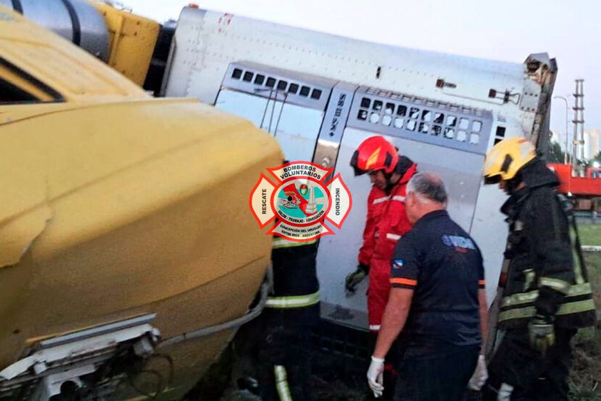Resultado casi milagroso El accidente tuvo lugar este jueves 26 de febrero, minutos antes de las 5, en el kilómetro 130 de la autovía General Artigas de la Ruta Nacional 14. Un camión de gran porte protagonizó un vuelco que, a pesar de la espectacularidad del siniestro, no terminó en tragedia, reportó a El Entre Ríos la Jefatura Departamental de Uruguay. El conductor, afortunadamente tras ser examinado por los profesionales médicos del hospital Justo José Urquiza de Concepción del Uruguay, solo sufrió lesiones de carácter leve, un resultado casi milagroso considerando el estado en el que quedó la cabina, consideraron en el mismo parte de prensa. Detonantes: mal descanso y distracción El vehículo, un camión Iveco 420 con acoplado térmico que circulaba en sentido sur-norte, perdió el control al llegar a la intersección con la rotonda conocida como «La Chamarrita». Según el propio relato del conductor, oriundo de Misiones, el mal descanso y una distracción momentánea hicieron que la unidad se desviara hacia la banquina oeste, provocando el vuelco total de la estructura. Rescate crítico Al arribar el personal policial de la Comisaría Tercera, se encontraron con un escenario crítico: el chofer se encontraba lúcido pero atrapado dentro de la cabina, con el torpedo del vehículo presionando fuertemente ambas piernas. Ante la urgencia, se comisionó a los Bomberos Voluntarios de Concepción del Uruguay, quienes trabajaron durante casi dos horas realizando maniobras de corte en la carrocería para liberar al accidentado. Recién a las 6:40 se logró la extracción del hombre, quien fue trasladado de inmediato en ambulancia al hospital uruguayense. Al menos hasta las 8:25, la circulación en la zona se mantenía parcialmente obstaculizada en el carril izquierdo del sentido sur-norte. En el lugar, personal de Caminera de Bella Vista y de la Comisaría Tercera asisten a los conductores por lo que recomendaron circular con extrema precaución.