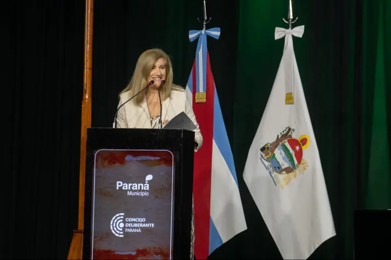 Sostenemos la idea de un Estado facilitador, cercano, inteligente; eficiente; activo para promover el desarrollo y firme para acompañar a quienes atraviesan mayores dificultades. Elegimos el camino del trabajo sostenido, de la administración ordenada y de la construcción de confianza. Con la eficiencia como eje para gobernar en este contexto, sostuvo Rosario Romero durante su discurso y agregó: Porque el orden institucional también es una forma de cuidar nuestra ciudadanía. Ese es nuestro punto de partida. Desde allí gestionamos. Desde allí priorizamos. Desde allí asumimos cada desafío. Luego puso como eje de gobierno la institucionalidad: Creemos en la institucionalidad. Creemos en el valor de las normas, en el respeto por las competencias, en el diálogo entre poderes del Estado. Creemos que la democracia se fortalece cuando cada institución cumple su rol sin estridencias ni atajos. Más adelante destacó: No creemos en los puntos de partida absolutos ni en las páginas en blanco. Ninguna ciudad vuelve a empezar cada cuatro años. Paraná es el resultado de un proceso conjunto construido durante décadas, con logros y también con aprendizajes. Asimismo, consideró que gobernar implica asumir esa continuidad histórica: fortalecer lo que funciona y transformar lo que sea necesario, siempre con responsabilidad. En ese sentido, reflexionó: reivindicamos el federalismo como principio organizador de la Argentina y como práctica cotidiana. Las ciudades somos el primer mostrador del Estado; donde los problemas se vuelven concretos y donde las respuestas no pueden esperar. Por eso defendemos la autonomía municipal, el trabajo con el gobierno provincial y el gobierno nacional. En materia de Gobierno, dijo que modernizar es ordenar; ordenar es cuidar recursos. La modernización del Estado es una obligación hacia los vecinos que necesitan respuestas rápidas, trámites simples y transparencia. Profundizamos la transformación digital del municipio, ampliando herramientas, despapelizando procedimientos y acercando servicios a través del Portal Ciudadano Mi Paraná. Cada avance significa menos tiempo perdido, menos burocracia y más autonomía para el contribuyente. Ser un Estado facilitador significa remover obstáculos, acompañar al que produce, simplificar habilitaciones y estar al lado del que quiere invertir, emprender y trabajar. Significa transformar al municipio en aliado del desarrollo, acotó Romero en otro tramo de la alocución. Transformación estructural Romero anticipó que este año la gestión iniciará una transformación estructural de la administración municipal con la implementación de la Tramitación Digital Inteligente, un ecosistema integral que reemplaza definitivamente el expediente en papel y da el paso definitivo a un modelo 100 % digital. Esto permitirá que no se inicien más expedientes en formato físico, poder tener seguimiento en tiempo real de las actuaciones, firma digital con plena validez legal, transparencia en cada intervención y mayor seguridad en el resguardo de la información. Es una decisión de gobierno que ordena los procesos, reduce tiempos, elimina burocracia innecesaria y fortalece la gobernabilidad, dijo. El turismo es una actividad recreativa: es empleo, movimiento comercial y oportunidades concretas para cientos de familias. Cada evento que se organiza en Paraná activa la hotelería, la gastronomía, el transporte, el comercio y el trabajo independiente, dijo respecto al significado del turismo para la ciudad. Movilidad y Transporte Hemos logrado una transformación en materia del transporte público. En Paraná decidimos buscar soluciones al transporte público. Trabajamos para dar un salto de calidad en lo referido al servicio. Lo venimos logrando, y nos pone muy felices el mostrar los resultados. Pusimos en marcha un nuevo modelo de transporte centrado en el usuario, la sostenibilidad y la innovación. Tenemos que estimular que la gente vuelva al transporte, detalló sobre el renovado y moderno servicio de transporte implementado desde diciembre de 2025, con la innovación, entre otras herramientas, de la aplicación Arriba Paraná. Servicios Públicos Romero valoró también que los servicios públicos son la medida más directa de la presencia del Estado. Allí es donde la gestión se vuelve visible, donde el vecino percibe si hay planificación, orden y respuesta, dijo. Luego informó que este año se llegará a implementar la totalidad del Plan Paraná 100% LED. Hasta el momento se intervino en 170 vecinales y se colocaron 14.400 artefactos, alcanzando al 80% de la ciudad. Sobre el plan Calle a calle, la Municipalidad consolidó en 2025 una política sostenida de recuperación y puesta en valor de la trama vial en toda la ciudad. Se trata de un programa integral que organiza y prioriza intervenciones estratégicas para mejorar la transitabilidad, fortalecer la seguridad vial y optimizar la conectividad entre barrios. Parque Fotovoltáico y Ruta 12 Romero aludió a que en el presupuesto 2026 se aprobó la ejecución de 59 obras. Pondremos en funcionamiento a mediados de año el Parque Solar Fotovoltáico de 10.400 paneles y significará un ahorro de más de $150 millones mensuales, equivalente al 100% de la iluminación LED del alumbrado público. También es destacable la continuidad de otra obra interrumpida por la Nación, la vinculación entre la R12 y Av Circunvalación como Acceso Sudeste, enumeró. Por último, Romero agradeció especialmente al Concejo Deliberante por el acompañamiento a los proyectos de ordenanza; enriquecieron las normas y generaron nuevas, tenemos un Concejo Deliberante que dialoga y que trabaja conjuntamente. La intendenta reconoció como Personalidad Destacada y una plaqueta a Marcelo Olmos por su vasta trayectoria como arquitecto, docente y escritor y por su aporte a la cultura de la ciudad. Estuvieron presentes los diputados nacionales Blanca Osuna y Andrés Laumann; el ministro de Salu