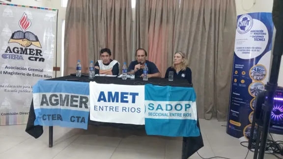 Conferencia de Prensa del Frente Sindical Salarial Docente La convocatoria tuvo como objetivo informar y fundamentar ante la docencia y la sociedad en general los motivos del rechazo a la propuesta salarial presentada por el Gobierno Provincial, considerada insuficiente y regresiva para el sector. El secretario general de la Asociación del Magisterio de Enseñanza Técnica Regional XI (AMET), Andrés Besel, destacó la importancia de transmitir con claridad lo que está sucediendo en el marco del conflicto salarial. Manifestó el desacuerdo con la decisión del gobernador de otorgar la recomposición por decreto y sostuvo la necesidad de retomar una verdadera instancia de negociación paritaria. Señaló que la recomposición salarial debe impactar efectivamente en el bolsillo docente, en la obra social y en los docentes jubilados. Por su parte, el secretario general de la Asociación Gremial del Magisterio de Entre Ríos, Abel Antivero, sostuvo que el Frente está unido en la defensa del salario y de los derechos de los trabajadores de la educación. Remarcó que desde el año pasado los gremios han tenido voluntad de diálogo y han solicitado instancias de negociación para evitar el conflicto. Sin embargo, afirmó que el Gobierno no respondió adecuadamente y presentó propuestas que fueron rechazadas por insuficientes. Indicó que el paro realizado en los 17 departamentos evidenció un fuerte descontento docente y responsabilizó al Gobierno Provincial por la situación, señalando que la decisión de otorgar el aumento por decreto profundiza el conflicto. También advirtió que el anuncio de una reunión informativa sobre una posible reforma previsional se suma al escenario de tensión, ya que cualquier modificación en ese sentido impacta directamente sobre los derechos jubilatorios del sector. Señaló que el Frente participará para escuchar de primera mano el proyecto, pero anticipó que defenderán firmemente los derechos previsionales. Prosiguió en el uso de la palabra, la Secretaria general de Sadop, Alejandra Frank, quien sostuvo que el sector atraviesa el segundo día de medidas de fuerza en un contexto de pérdida de derechos a nivel nacional y provincial. Señaló que la propuesta salarial no dignifica la tarea docente y que los montos en negro afectan la escala salarial, la obra social y los aportes jubilatorios. Describió un escenario de desgaste y agotamiento en la docencia, con numerosos casos de licencias médicas y docentes que evalúan abandonar la profesión. Destacó que la mayoría del sector está compuesto por mujeres, muchas de ellas sostén de hogar, y que el reclamo es por un salario justo que permita vivir con dignidad. El Frente Sindical analiza nuevas medidas y no descarta la instalación de una carpa blanca En medio del conflicto salarial docente y ante la posibilidad de una conciliación obligatoria, referentes del Frente Sindical Docente señalaron que el espacio se encuentra evaluando distintas estrategias en unidad y que el escenario podría extenderse en el tiempo. Antivero indicó que no anticiparán públicamente todas las acciones en análisis para no facilitar movimientos del Gobierno, aunque confirmó que la instalación de una carpa blanca es una de las alternativas que figura en agenda. En ese marco, sostuvo que el Frente mantiene la voluntad de diálogo y que el objetivo central es que los estudiantes estén en las escuelas. Sin embargo, advirtió que resulta difícil hablar de calidad educativa cuando los docentes enfrentan dificultades para cubrir necesidades básicas. Respecto a los plazos y a una eventual conciliación obligatoria, explicó que cada sindicato deberá evaluar la situación a través de sus mecanismos orgánicos plenarios o congresos y que luego se coordinarán los pasos a seguir en forma conjunta. En la misma línea, Besel remarcó que todas las acciones estarán enmarcadas en lo resuelto por los delegados en Congreso y que cualquier novedad vinculada a la reforma previsional obligará a convocar a los órganos de conducción para analizar el escenario. Ratificó que las definiciones salariales se trabajarán dentro del Frente Sindical, priorizando la unidad, y reiteró que cualquier recomposición debe impactar en docentes activos, jubilados y en la obra social. Besel también cuestionó decisiones políticas que según su visión afectan el financiamiento educativo y sostuvo que el reclamo apunta a garantizar un salario que respete criterios constitucionales y contemple a todos los sectores del sistema. Por su parte, Besel manifestó su desacuerdo con las políticas nacionales, al considerar que favorecen a sectores concentrados en detrimento de los trabajadores. Señaló que la pérdida del poder adquisitivo y determinadas decisiones presupuestarias reflejan una orientación que, a su entender, no prioriza a la educación. Reiteró que llevarán la voz de los afiliados a las instancias orgánicas correspondientes y mantendrán el reclamo salarial. Antivero, advirtió que existe una avanzada sobre el movimiento obrero y los niveles de sindicalización, y que se intenta naturalizar el ajuste en áreas sensibles como la educación y la salud. En ese contexto, sostuvo que el desafío del sindicalismo es generar conciencia y fortalecer la organización colectiva para defender derechos conquistados históricamente. (APFDigital)