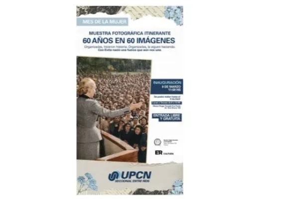 Muestra Fotográfica de UPCN se expone en el Museo de la Escuela Hogar en el marco del Mes de la Mujer La muestra narra la creación de las Unidades Básicas en Entre Ríos, especialmente el trabajo territorial y político de las delegadas del Partido Peronista Femenino en nuestra provincia. Está compuesta por imágenes inéditas tomadas entre 1949 y 1955, que reflejan las tareas permanentes de organización y acción social de las delegadas y las visitas que Eva Perón realizó a Entre Ríos. Las fotografías forman parte del libro La vida por Perón y Evita. El Partido Peronista Femenino en Entre Ríos. 1949-1955, de autoría de Patricia Lucero de Bagnato, que es auspiciado por UPCN Entre Ríos. La exposición originalmente se inauguró en 2012 como homenaje a Evita, al cumplirse 60 años de su fallecimiento. Para nuestro Sindicato es muy valioso el testimonio de estas mujeres comprometidas con la militancia y la acción social en Entre Ríos, destacó la Secretaria de Organización de UPCN, Noelia Bertín. Aseguró que estas imágenes recuperan experiencias de organización y participación que forman parte de la memoria colectiva de nuestra provincia y, a la vez, reflejan el aporte que muchas mujeres, desde distintos ámbitos y con gran sensibilidad, hicieron al desarrollo de iniciativas sociales y comunitarias. Por ese motivo enfatizó: Visibilizar estas historias permite reconocer el papel que las mujeres han tenido y continúan teniendo en la construcción de derechos, en la defensa de lo público y en la vida social de nuestra comunidad. La colección se encuentra en exposición permanente en la sede central de UPCN Entre Ríos, ubicada en Santa Fe 463 de Paraná. Ahora, una parte de las imágenes se trasladan especialmente al Museo Hogar Escuela Eva Perón para integrarse a las actividades por el Mes de la Mujer. Se podrá visitar de lunes a viernes de 8 a 14, hasta el 9 de abril inclusive, en el edificio de calle Don Bosco 749, Paraná, con entrada libre y gratuita. Para recorridos en horario vespertino, se deberá solicitar turno previo al siguiente correo: museoevitaer@gmail.com. (APFDigital)