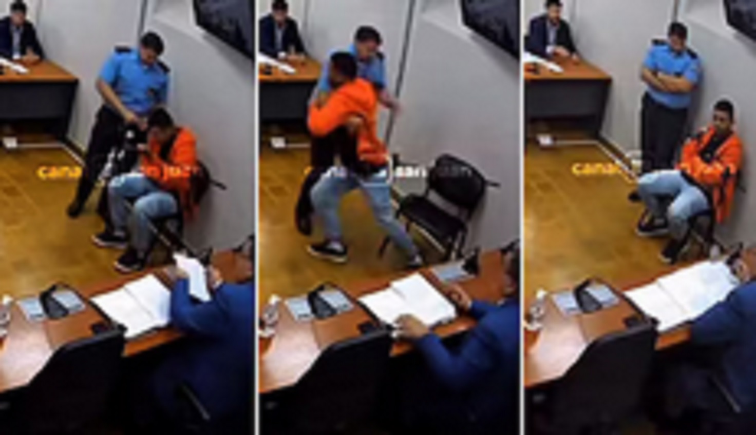 Las audiencias se hacen con agentes penitenciarios o policías presentes en la sala y cerca del detenido por una razón: evitar agresiones o situaciones complejas que pongan en peligro a las partes. Y eso fue lo que pasó en las últimas horas en un tribunal sanjuanino. Un preso intentó atacar a un fiscal y el efectivo fue clave para frenarlo. La situación sorprendió a todos, menos al policía, que reaccionó mientras se escuchaba decir a uno de los presentes: Qué es lo que le pasa, tranquilo. La respuesta fue un puñetazo del reo a la TV que le valió una causa por daños extra a su historial criminal. Fue un momento desagradable. Cuando el juez decide no darle lugar a la defensa, empezó el conflicto. Reaccionó, intentó agredirme, me insultó y me dijo que no sabía lo que estaba pasando, relató el fiscal José Plaza a 0264 Noticias. Todo sucedió este jueves luego de que fuera trasladado desde la cárcel Axel Hernán Rojas, un preso de 28 años condenado a 11 años, 2 meses y 15 días de prisión, a los tribunales de San Juan. Rojas tenía que enfrentar una audiencia en una causa por lesiones agravadas por haberle pegado con un palo a un agente penitenciario y fracturarle los dedos de una mano. El fiscal en ese expediente es Plaza. En ese contexto, antes de finalizar, el juez Alberto Caballero le negó a la defensa oficial de Rojas cambiar al preso al pabellón de Sanidad, como había solicitado por sus problemas de adicciones, por una cuestión de jurisdicción y le dijo que ese planteo debía hacerlo ante el Juzgado de Ejecución. Luego, el juez le imputó al detenido las lesiones graves por el ataque al penitenciario. Ante esto, Rojas se levantó de la silla e intentó agredir al fiscal, pero un policía lo contuvo y lo puso contra la pared. Visiblemente alterado, y como se ve en el video, le dio un puñetazo a una TV que estaba colgada en la pared. Lo importante es que no pasó a mayores. Cuando lo redujeron, le dio golpes de puño a la pantalla, agregó el fiscal. La Justicia no se la dejó pasar y se le abrió una causa en flagrancia por daño agravado. No me amenazó, está enojado conmigo, acotó el fiscal al portal sanjuanino tras el ataque que no pasó a mayores, pero que le sumará un tiempo más en prisión a Rojas.