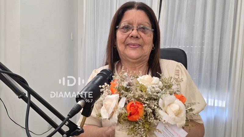 Recibimos en los estudios de la radio a la Mujer Destacada Diamantina 2026, la artesana María del Carmen Nieva, una mujer sencilla y trabajadora que hace más de 40 años realiza sus propias creaciones con un talento innato. María del Carmen fue elegida por el voto popular y a su vez por la organización integrada por mujeres funcionarias, concejales y la vice intendente. Hace unos días estaba trabajando desde muy temprano como lo hago todos los días, lavando la chala y recibo un llamado y un mensaje de la vice intendente donde me decía que había sido seleccionada como una de las mujeres destacadas diamantinas, luego me llegó un sobre con la invitación, realmente recibí esta noticia con mucha alegría y emoción, tengo mucho amor por mi oficio, relató. Comencé hace muchos años con artesanía en papel, mi papá me enseñó a hacer flores. Un tiempo después me acerqué al Centro El Poder de las Manos y Beatriz Airaldi me apoyó e incentivó a trabajar con chalas de maíz, y desde ese momento no paré más, recordó. Tengo mi tallercito en casa, vivo en el Barrio Martín Fierro en calles Falucho y Mitre; mis hijos me ayudan en la tarea de recolección y a cosechar en el lugar todo lo necesario para realizar mis artesanías, limpiamos las hojas del maíz y otros materiales que sacamos del campo, también incorporo telas. Mis nietos manejan mis redes sociales. Facebook e Instagram: Souvenirs Nonnamore. Cuando me destacaron lo primero que pensé fue en mis hijos y mis nietos que siempre estuvieron a mi lado, mi gran agradecimiento a ellos, valoró. Voy a cumplir 72 años, mantengo la alegría y las ganas de seguir trabajando, todos los días aprendo y aplico cosas nuevas, dejo volar mi imaginación. Realizo ramos de novias, souvenirs, centros de mesa, trabajo para eventos, muñecas, pesebres, adornos navideños, entre otras cosas. María del Carmen recordó: Dí clases ad-honorem para 60 alumnos en la escuela N°52, en la escuela de Belgrano, he brindado talleres en distintos lugares. Me gustaría mucho enseñar a la gente de los barrios de Diamante para que puedan aprender y vender sus trabajos. Durante 5 años represente a Diamante en la Fiesta de la Artesanía en Colón. En nuestra ciudad hay muy buenos artesanos, admiro los que trabajan el cuero. Al finalizar la charla María del Carmen señaló: Estaba muy nerviosa, es la primera vez que visito una radio, me sentí muy cómoda. (DiamanteFM)