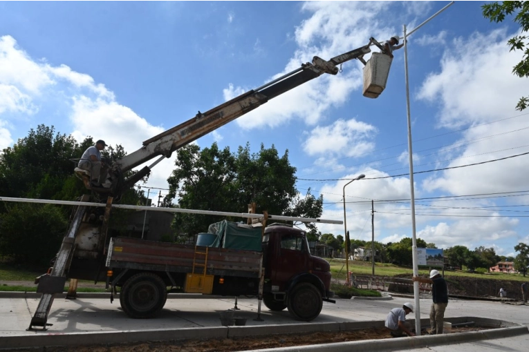 La Dirección de Energía, a cargo de la Secretaría de Desarrollo Territorial e Infraestructura, instaló siete de las ocho estructuras de alumbrado público en los canteros centrales del sector intervenido del boulevard Martínez, en el tramo que conecta Urquiza al Oeste con Gervasio Méndez, una extensión cercana a los 250 metros lineales. Cada soporte cuenta con dos extensiones habilitadas para llevar dos equipos LED, orientados hacia cada una de las calzadas para garantizar cobertura lumínica uniforme. Cuatro unidades quedaron emplazadas en el cantero central comprendido entre Gervasio Méndez y San Martín, mientras que las tres restantes se ubicaron en la plazoleta central que se ubica entre San Martín y Urquiza al Oeste. Los próximos días se sumará otra columna y los respectivos soportes para los equipos LED de las dos últimas. El operativo se ejecutó con una cuadrilla integrada por cuatro agentes de la Dirección de Energía y una grúa perteneciente al área. En los próximos días se realizará también el tendido eléctrico, para el cual ya se dispuso un conducto subterráneo que evita intervenciones sobre la superficie construida en los últimos meses. Una vez finalizada la instalación de columnas y cableado, se incorporarán los artefactos lumínicos. Estas tareas forman parte de la construcción y pavimentación del boulevard Martínez, entre Urquiza al Oeste y Gervasio Méndez, una intervención destinada a consolidar la conectividad entre los barrios 348, 338 y 120 Viviendas con uno de los accesos más relevantes del sector oeste. En este sentido, la renovación del boulevard Martínez no solo implica la ejecución de una calzada moderna, sino que además supone ordenar un sector específico, mejorar estándares de seguridad, optimizar la circulación y fortalecer la integración entre barrios y accesos estratégicos. Cada componente, desde la estructura vial hasta el sistema de iluminación y drenaje, responde a un criterio técnico que prioriza durabilidad, funcionalidad y planificación urbana a largo plazo. Los detalles de la obra del Boulevard Martínez Con una inversión oficial que ronda los 400 millones de pesos, el proyecto apunta a optimizar la estructura vial y jerarquizar un eje estratégico dentro del entramado urbano. Previo al inicio de los trabajos que se realizaron durante los últimos meses, parte del corredor carecía de mejoras y otro sector presentaba un pavimento de hormigón con deterioro avanzado. La vida útil de esa infraestructura, fijada en 25 años por la Ordenanza Nº 7204 del años 1966, se encontraba ampliamente excedida. Ante ese escenario, se demolió la totalidad del material existente y se ejecutó una base nueva para sostener una estructura renovada. La iniciativa contempló la construcción de pavimento rígido de hormigón armado sobre suelo calcáreo estabilizado. El diseño final prevé dos calzadas de 6,50 metros de ancho cada una, separadas por un cantero central de 1,60 metros a lo largo de un desarrollo lineal que alcanza los 246 metros, conforme a los planos y cómputos métricos elaborados por la Secretaría de Desarrollo Territorial e Infraestructura. El plan incorpora además intervenciones complementarias con personal municipal, entre ellas la instalación de alumbrado central, actualmente en ejecución. Asimismo, el proyecto incluye la construcción de dos cámaras de captación que cumplirán la función hidráulica del dispositivo original y garantizarán un adecuado escurrimiento pluvial. Contribución por mejoras A mediados del año pasado, el Departamento Ejecutivo Municipal elevó al Concejo Deliberante un proyecto de ordenanza para establecer la obligatoriedad del pago de Contribución por Mejoras por parte de los frentistas beneficiados. Este mecanismo ya se había aplicado en intervenciones similares sobre los boulevares Antonio Daneri y Pedro Jurado, así como en la Avenida Parque en sus dos etapas. Sin embargo, en este caso, la normativa dispuso una reducción del porcentaje a cargo de los vecinos: mientras en experiencias anteriores la contribución alcanzó en la mayoría de los casos el 100% y en otros el 60%. Para el boulevard Martínez se fijó el 50% del costo total al finalizar la intervención. La ordenanza establece que el valor de referencia sea el precio del pavimento de hormigón armado, utilizado como parámetro para determinar el monto unitario correspondiente a cada frentista. También se incorporaron incentivos para quienes abonaron al contado antes del inicio de los trabajos, con una bonificación del 10%, y para quienes efectuaron el pago entre la promulgación de la norma y los 90 días posteriores a la finalización, con un descuento del 5%. Para acceder a estos beneficios resulta indispensable no registrar deudas fiscales con el Municipio. Quienes opten por no adherir a esas condiciones podrán cancelar el monto mediante cuotas mensuales, iguales y consecutivas, con el interés de financiación previsto en el Código Tributario y ordenanzas complementarias. La cantidad máxima de cuotas será determinada por el Departamento Ejecutivo Municipal. Municipalidad de Gualeguaychú
