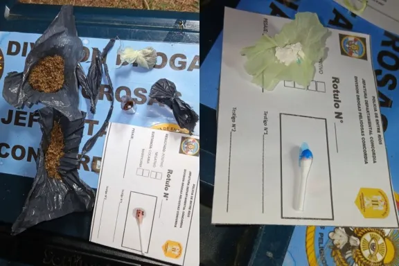 Controles en la madrugada Intentaron descartar droga al ver a la Policía en la Costanera Nébel: secuestraron marihuana y cocaína Funcionarios policiales de la Comisaría Décima realizaron durante la madrugada un operativo preventivo de saturación en distintos sectores de la ciudad de Concordia. En el marco de los controles, los uniformados procedieron a la retención de cuatro motovehículos por infracciones a la Ley Nacional de Tránsito 24.449. Durante el despliegue, en inmediaciones de Costanera Nébel y Néstor Garat, los efectivos identificaron a dos ciudadanos que, al advertir la presencia policial, intentaron deshacerse de varios elementos que llevaban entre sus pertenencias. Ante esta situación, los funcionarios procedieron al secuestro de cuatro envoltorios con marihuana y un envoltorio con cocaína, quedando los elementos a disposición de la Justicia.