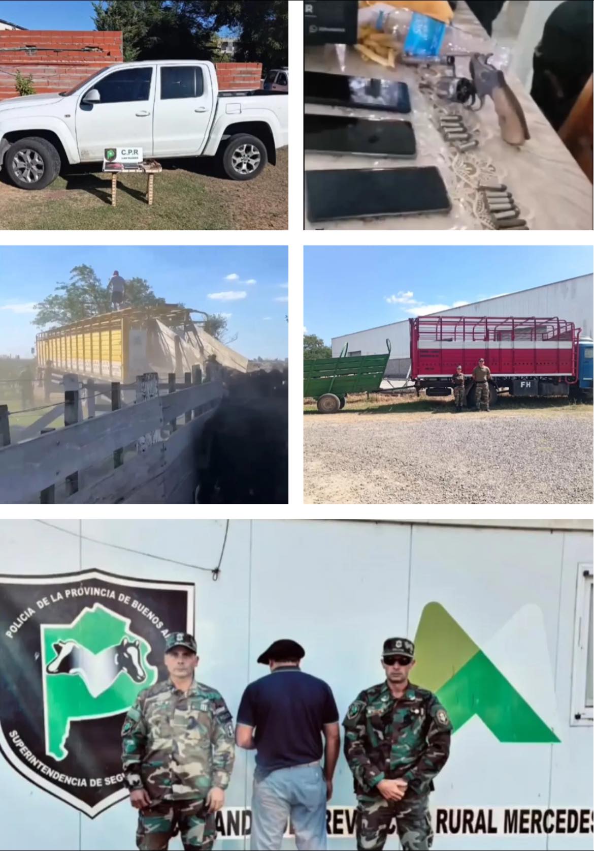 Tras una investigación policial, recuperan animales robados a un productor rural El Comando de Prevención Rural de Las Flores informó el esclarecimiento de un importante caso de abigeato agravado ocurrido en el partido de Las Flores, que culminó con la recuperación total de los animales sustraídos a un productor agropecuario de la zona. La investigación se inició el 6 de marzo de 2026, cuando el damnificado denunció en la sede policial la desaparición de 58 animales vacunos de distintas categorías, entre ellos 40 vacas, 16 terneros y 2 toros, pertenecientes a un establecimiento rural ubicado en la zona conocida como Pago de Oro. Al realizar las primeras tareas en el lugar, los investigadores detectaron huellas de vehículos y una manga casera armada para facilitar la carga del ganado, lo que evidenciaba una maniobra previamente planificada para concretar el robo. Además, vecinos del sector habían advertido días antes sobre movimientos sospechosos de camiones y una camioneta cargando animales en el predio. A partir de estos elementos, el Grupo Táctico Operativo (G.T.O.) del C.P.R. inició una investigación bajo la intervención de la Unidad Funcional de Instrucción N°11 de Azul, dependiente del Departamento Judicial de Azul. Las tareas incluyeron la toma de testimonios, análisis de cámaras de seguridad y el seguimiento de vehículos mediante los centros de monitoreo de Las Flores, San Miguel del Monte, Navarro y Mercedes. De acuerdo con los datos reunidos, el robo se habría concretado durante la madrugada del 4 de marzo, utilizando tres vehículos: una camioneta Volkswagen Amarok blanca radicada en Mercedes, un camión Mercedes Benz 1517 con cabina azul y caja roja y blanca, también de esa ciudad, y un camión Mercedes Benz Axor 2036 con jaula blanca proveniente de Gualeguay. Con las pruebas obtenidas, el Juzgado de Garantías N°1 de Azul ordenó el 11 de marzo una serie de allanamientos en las ciudades de Mercedes y Marcos Paz. Como resultado de los operativos, los investigadores lograron recuperar la totalidad de los 58 animales, que fueron encontrados en un establecimiento rural ubicado entre Mercedes y Navarro. Posteriormente, el ganado fue restituido a su propietario. Durante los procedimientos también se procedió al secuestro de la camioneta Volkswagen Amarok, el camión Mercedes Benz 1517, varios teléfonos celulares y un revólver calibre .38 con municiones. Además, fueron identificados los conductores de los vehículos involucrados, quienes quedaron a disposición de la Justicia. La causa, caratulada Abigeato, continúa bajo la intervención de la fiscalía a cargo de los doctores Peiretti y Barberena, quienes avanzan con nuevas medidas judiciales en el marco de este millonario robo rural que fue esclarecido tras una intensa investigación policial.