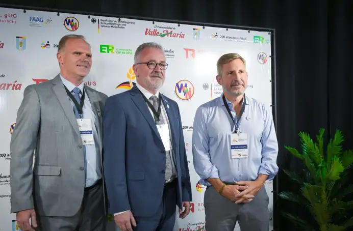 El gobernador estuvo en la apertura del congreso "El futuro de los Alemanes del Volga en Argentina tras el reconocimiento de sus dialectos como patrimonio cultural inmaterial", que tuvo lugar este miércoles en Valle María El gobernador Rogelio Frigerio estuvo en la apertura del congreso El futuro de los Alemanes del Volga en Argentina tras el reconocimiento de sus dialectos como patrimonio cultural inmaterial, que tuvo lugar este miércoles en Valle María. Allí, afirmó que los alemanes del Volga continúan haciendo posible el progreso de Entre Ríos. El encuentro se realizó enmarcado en la Ley Nº 11.187 de 2025, que reconoce como patrimonio cultural inmaterial de la provincia la variedad lingüística basada en los dialectos franco-renanos, hessianos y palatinos de los Alemanes del Volga. En la oportunidad, el gobernador destacó el trabajo conjunto que la provincia viene realizando con entidades como la Stiftung Verbundenheit para fortalecer los vínculos históricos con el pueblo alemán. Aseguró que esta relación trasciende el pasado migratorio y se consolida en una agenda de cooperación estratégica que busca dar frutos a largo plazo tanto en el sistema educativo como en el productivo. Estoy seguro que esta agenda de cooperación que venimos armando va a dar grandes frutos para ambos estados a lo largo del tiempo, subrayó y señaló que estos lazos institucionales son caminos que deben mantenerse para asegurar el progreso de Entre Ríos. Asimismo, el mandatario hizo hincapié en la implementación de programas concretos, como el intercambio académico y la investigación aplicada en sectores de vanguardia como la biotecnología, la robótica y la agroindustria sustentable. Un punto clave de esta alianza es la formación técnico dual, inspirada en el modelo bávaro, que busca integrar el estudio con la práctica laboral para potenciar el desarrollo de las pymes locales. La experiencia alemana con regiones fuertes y con participación activa en materia de cooperación internacional es una referencia valiosa para todas las provincias argentinas. Nos muestra que el desarrollo se construye con instituciones sólidas, reglas claras y visión de largo plazo, sostuvo Frigerio. Por su parte, el intendente de Valle María, Mario Sokolovski, se refirió al deseo de seguir recorriendo junto a Alemania un camino de provecho mutuo, fortaleciendo nuestras relaciones y ampliando nuestras oportunidades; y precisó que el congreso, entre otras cosas, está motivado por la lingüística que hablamos los alemanes del Volga. Hablar en alemán nos conecta con nuestra sensibilidad, con cada persona de Alemania que nos visita y entre nosotros también, concluyó. Por su parte, el jefe del Departamento Cultural de la Embajada de Alemania en Argentina, Tomás Konrad, agradeció al gobierno y a la Legislatura de Entre Ríos la aprobación de la ley 11.187, que declaró como patrimonio inmaterial de la provincia la variedad lingüística de los descendientes de alemanes del Volga. En nombre del embajador Dieter Lamlé, valoró que podamos contar con tanto apoyo y compromiso en el cuidado de los lazos entre nuestros pueblos; lo consideramos como un gran privilegio. Presencias Estuvieron presentes, además, el presidente de la Cámara de Diputados, Gustavo Hein; el comisionado del Gobierno Federal de Alemania para Asuntos de los Repatriados y las Minorías Nacionales, Bern Fabricius; los legisladores Gustavo Vergara, Lenico Aranda y Mariel Ávila; presidentes municipales y comunales de localidades vecinas; y autoridades de la Federación de Asociaciones Argentinos Germanas, de la Federación Argentina de Descendientes de Alemanes del Volga y de la Confederación Argentina de Colectividades.