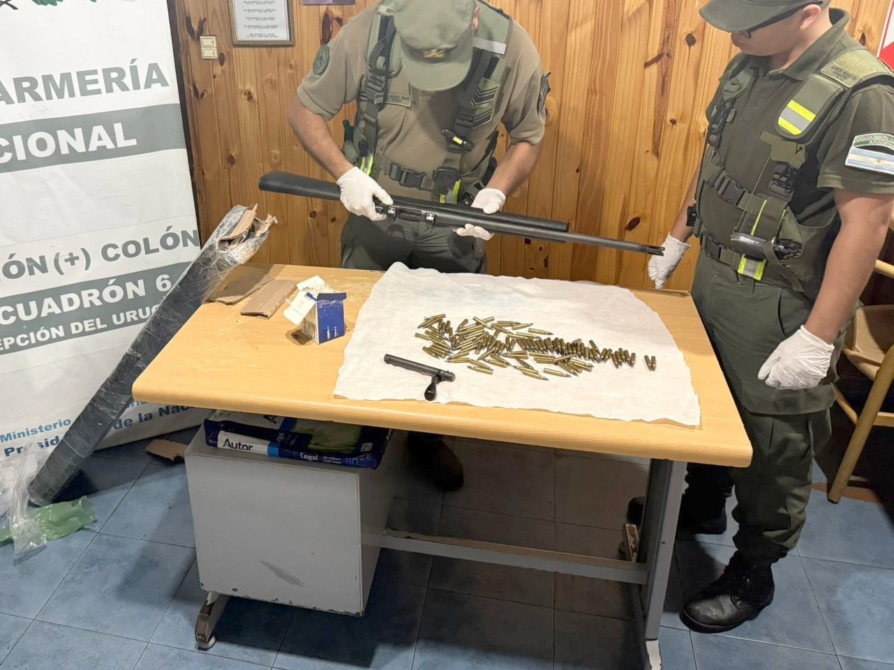 Efectivos del Grupo Seguridad Vial Colón, dependiente del Escuadrón 6 Concepción del Uruguay, detectaron un arma de fuego al escanear una encomienda durante un control sobre la Ruta Nacional 14, a la altura del kilómetro 164. Con autorización de la Unidad Fiscal de Colón, los gendarmes abrieron el paquete y secuestraron un fusil de repetición calibre .223 junto a 100 cartuchos, que eran transportados sin aval legal. El procedimiento se realizó sobre un transporte de paquetería y derivó en actuaciones por infracción al artículo 189 bis y a la Ley 20.429 de Armas y Explosivos.