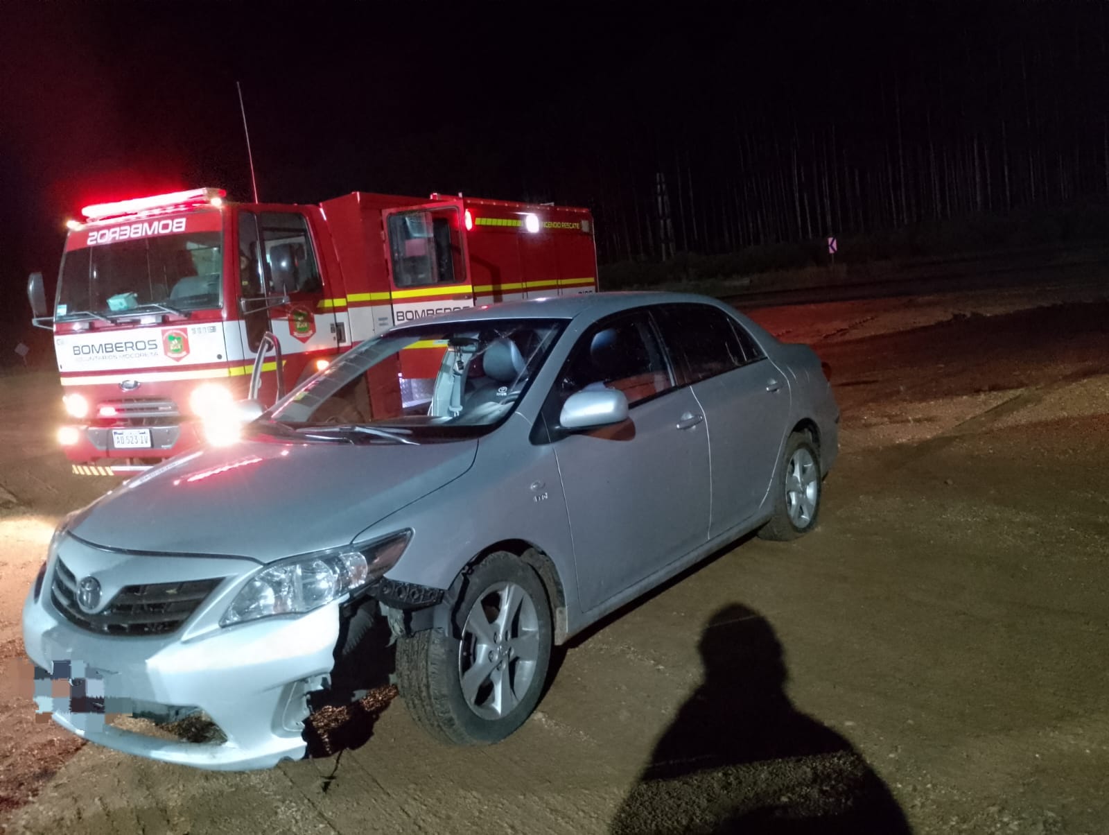 Este domingo, siendo las 20:32 horas se recibe aviso de un despiste en la Ruta Nacional 14 Km 348. Ante esto, sale el móvil con siete bomberos quienes al llegar al lugar constatan la situación; intervinieron para llevar a quienes fueron parte al hospital base Santa Catalina y Comisaría local. Los damnificados se dirigian de Sur a Norte, ambos fueron trasladados en la ambulancia para su atención. Siendo las 21:30 horas móvil regresa a la central.