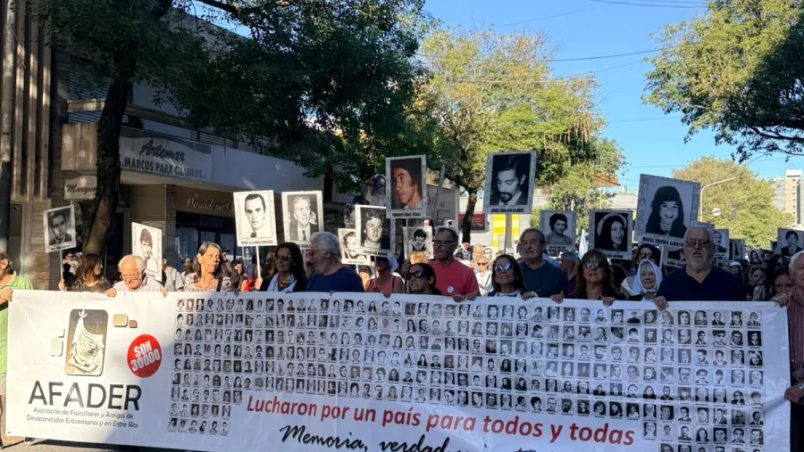 Una multitud se congregó este martes por la tarde en la Plaza Sáenz Peña de Paraná para participar de la tradicional movilización por el Día Nacional de la Memoria por la Verdad y la Justicia. La convocatoria, impulsada por la Multisectorial de los Derechos Humanos, reunió a asociaciones gremiales, dirigentes políticos y organizaciones sociales y estudiantiles, que marcharon hacia la Plaza Alvear. La movilización comenzó alrededor de las 17.30 y avanzó por las calles céntricas en un clima de reflexión y memoria colectiva. Durante el recorrido, se desarrollaron distintas intervenciones artísticas. Una de las más significativas tuvo lugar en las escalinatas de la Catedral, donde un grupo de teatro representó la lucha de las Madres de Plaza de Mayo durante la última dictadura cívico-militar. Digan dónde están, repetían los actores, evocando el reclamo histórico por los hijos desaparecidos. La marcha continuó hasta el Museo de Bellas Artes, frente a la Plaza Alvear, donde se llevará a cabo la lectura del documento consensuado por las organizaciones convocantes. El lugar no es casual: durante la última dictadura funcionó allí uno de los centros clandestinos de detención más importantes de Paraná y la región. El 24 de marzo de 1976, las Fuerzas Armadas tomaron el gobierno por asalto e iniciaron la dictadura más sangrienta de la historia argentina. A partir de entonces, se interrumpió el orden democrático y se desplegó un plan sistemático de persecución, tortura, asesinato y desaparición de personas desde el propio Estado. Paralelamente, se instauró un modelo económico que golpeó la industria nacional, incrementó de manera exponencial la deuda externa y favoreció a los sectores más concentrados, con una fuerte desregulación financiera. Este martes se cumplen 50 años del inicio de ese período que se extendió hasta 1983. En ese marco, la movilización en Paraná volvió a poner en el centro la memoria colectiva y el reclamo de justicia por los 317 entrerrianos desaparecidos.