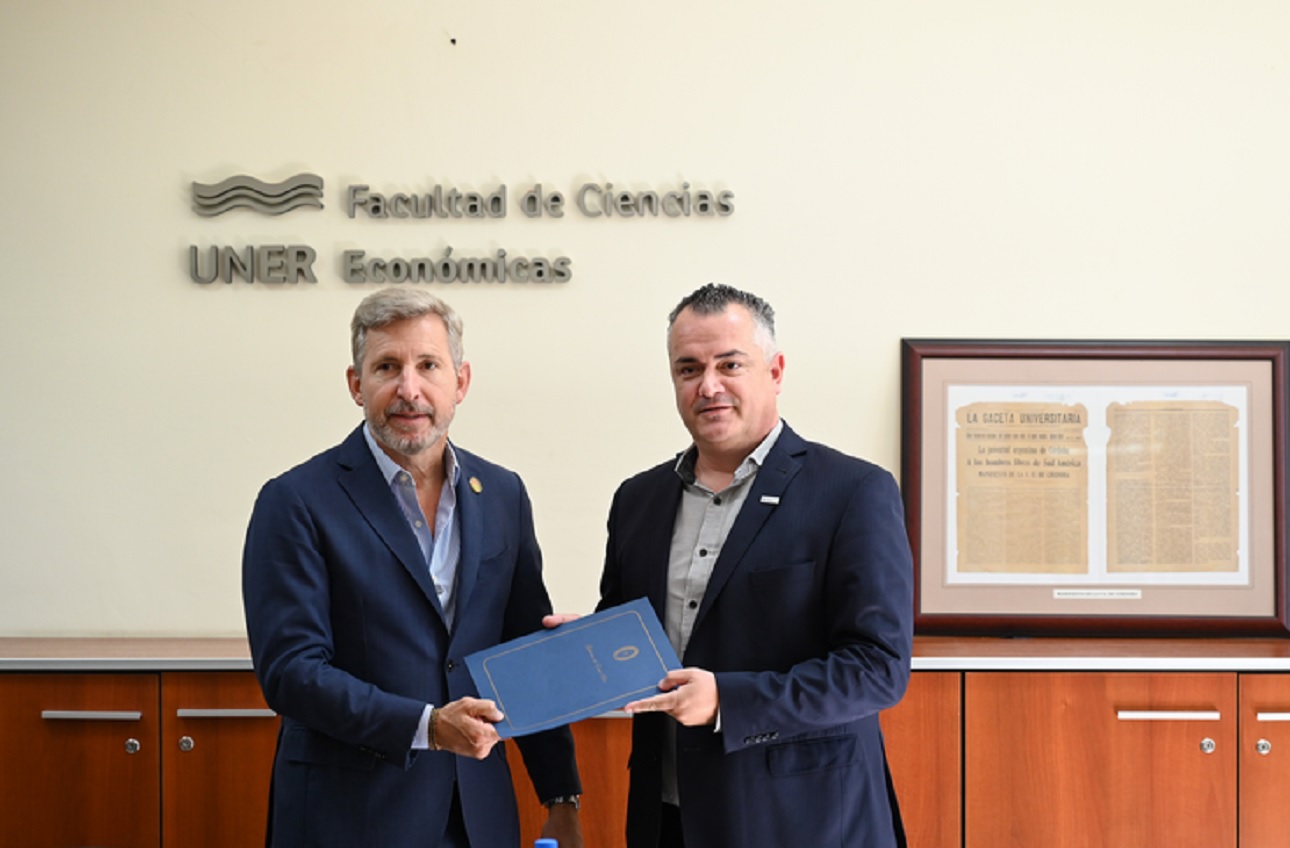 El gobernador Rogelio Frigerio entregó el decreto mediante el cual el Gobierno de la Provincia de Entre Ríos formaliza la transferencia, a título de donación, del inmueble donde actualmente funciona la Facultad de Ciencias Económicas, a favor de la Universidad Nacional de Entre Ríos. La entrega se realizó en el marco de una visita del mandatario provincial a la facultad, donde mantuvo un encuentro de trabajo junto al decano Sebastián Pérez, autoridades académicas; el ministro de Gobierno y Trabajo, Manuel Troncoso; y el presidente del Consejo General de Educación, Carlos Cuenca. En la oportunidad, Frigerio señaló que esta acción "tiene que ver con un proceso que empezamos desde el arranque de la gestión, que es la titularización de propiedades para un montón de vecinos que hace décadas son dueños de su lugar, pero no tienen un papel que así lo determine". "Creo que las inversiones que veo siguen haciendo en esta facultad, se hacen con mucha más seguridad y convicción cuando uno tiene realmente la titularidad legal en el predio, que sin esa formalidad", subrayó. La medida garantiza la regularización dominial del edificio y fortalece el desarrollo institucional de la universidad pública, brindando mayor previsibilidad para el crecimiento de sus actividades académicas y de investigación científica. Al respecto, el ministro de Gobierno y Trabajo, Manuel Troncoso, destacó el trabajo conjunto y la estrecha colaboración entre la institución educativa y la gestión pública provincial. Subrayó que el vínculo con el decano es "muy simbiótico" y afirmó que "hay mucha sinergia entre el gobierno provincial y la Facultad de Ciencias Económicas de UNER en términos de gestión". Asimismo, valoró la capacidad del equipo universitario para proponer una agenda de trabajo creativa y una "visión planificada en términos de educación e inserción al mercado de trabajo" y señaló que, aunque los procesos administrativos suelen ser extensos, los resultados se alcanzan cuando las iniciativas son "conducidas con responsabilidad, seriedad y compromiso". Por su parte, el decano Sebastián Pérez resaltó la relevancia de la colaboración con el gobierno provincial para concretar la transferencia dominial del edificio de la institución. "Estamos muy agradecidos de este momento histórico", manifestó y afirmó que obtener "definitivamente la propiedad del inmueble para la Universidad Nacional de Entre Ríos, para la facultad, para toda la comunidad, es muy importante". Hizo hincapié en que este avance es el resultado de una gestión conjunta para destrabar trámites de años anteriores y destacó que contar con la titularidad legal brinda seguridad para continuar con las inversiones en la facultad más grande de la provincia, la cual ha crecido significativamente en su oferta académica y matrícula. En ese sentido, se destacó la importancia de continuar acompañando y consolidando el sistema universitario público, promoviendo políticas que fortalezcan la educación superior en la provincia. La transferencia del inmueble se enmarca en la normativa provincial vigente y responde a una demanda histórica de la comunidad educativa, permitiendo avanzar en la consolidación de la infraestructura universitaria.