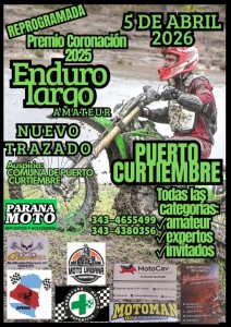 Leido 9 veces Será el domingo 5 de Abril, desde las 9 de la mañana en el circuito de la costa, en un nuevo trazado. Estarán todas las categorías de la disciplina, amateurs, expertos e invitados. Desde la Comuna recomiendan llevar un sillón para disfrutar de un día espectacular, junto al río y observando la competencia del Enduro. Se podrán instalar stand para la venta, no es necesario inscribirse y no se cobra por puestos. (Fuente: Comuna de Puerto Curtiembre)