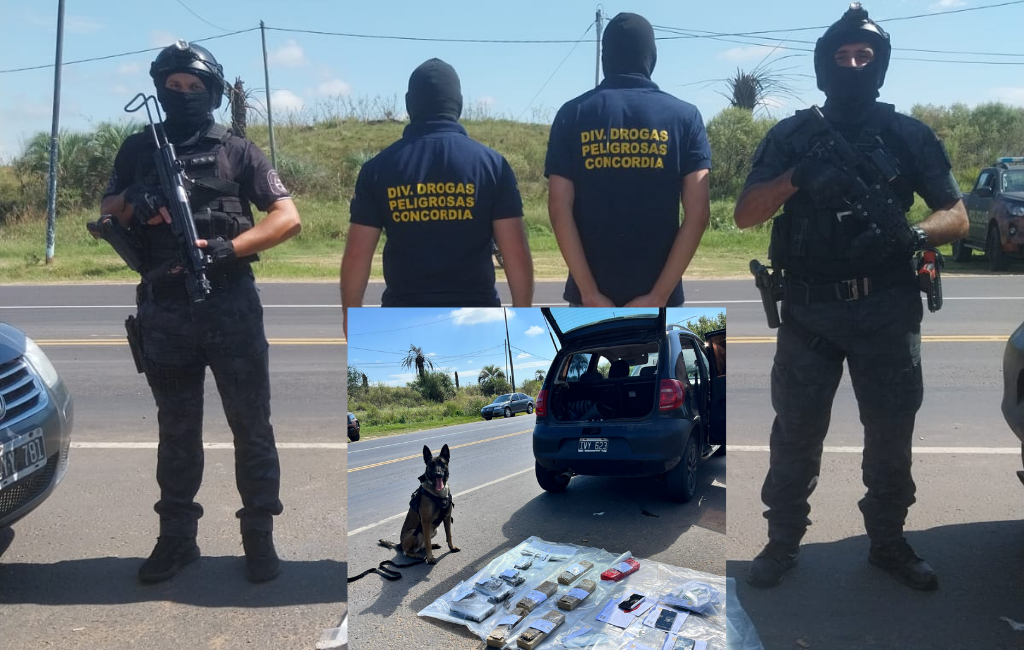 Un operativo certero en el acceso sur de la ciudad permitió desarticular un traslado de estupefacientes de alto valor en el mercado ilegal. En un procedimiento contundente contra el narcotráfico, personal de la Policía de Entre Ríos, a través de la División Drogas Peligrosas dependiente de la Jefatura Departamental Concordia, logró el secuestro de una importante cantidad de droga y la detención de dos personas vinculadas a la actividad ilícita. El operativo se desarrolló este viernes, iniciando a las 06:30 y finalizando alrededor de las 10:55 horas, sobre Avenida Presidente Perón, frente al Parque Industrial de Concordia, uno de los accesos estratégicos a la ciudad. La intervención se llevó adelante en el marco de una causa por supuesta infracción a la Ley Nacional N° 23.737, con conocimiento e intervención del Juzgado Federal de Concordia, a cargo de la Dra. Analía Ramponi, con Secretaría del Dr. Alan Bergdolt. EL MOMENTO CLAVE, EL VEHÍCULO FUE DETENIDO AL INGRESAR A LA CIUDAD En ese punto estratégico, se detiene la marcha de un automóvil con dos ocupantes mayores de edad, provenientes de la provincia de Buenos Aires, quienes intentaban ingresar a Concordia. La situación despertó las sospechas del personal interviniente, activándose de inmediato los protocolos de control y requisa. EL OLFATO QUE NO FALLA MALI MARCÓ LA DROGA Para profundizar la inspección, se dio intervención al can antinarcóticos Mali, perteneciente a la División Drogas Peligrosas Concordia. El can realizó una marcación positiva en el sector del baúl del vehículo, señal inequívoca de la presencia de estupefacientes. A partir de ese indicio determinante, se desplegó el procedimiento que permitió confirmar lo que se presumía. DROGA LISTA PARA DISTRIBUCIÓN Durante la requisa vehicular, realizada bajo las facultades del Art. 230 bis del Código Procesal Penal, los efectivos lograron incautar: Casi 3 kilos de cocaína distribuidos en cuatro envoltorios compactos. Más de 4,7 kilos de marihuana en seis paquetes. Un automóvil Volkswagen CrossFox utilizado para el traslado. Tres teléfonos celulares. $411.800 en efectivo y U$D 100 Documentación relevante para la investigación. DOS DETENIDOS CON VÍNCULOS EXTRAPROVINCIALES Como resultado del procedimiento, fueron detenidas dos personas mayores de edad, un hombre de 48 años, oriundo de la provincia de Buenos Aires y una mujer de 40 años, de nacionalidad paraguaya, ambos quedaron detenidos e incomunicados, a disposición de la Justicia Federal. CONTROL ESTRATÉGICO Y PREVENCIÓN ACTIVA El procedimiento pone de relieve la importancia de los controles dinámicos en puntos clave de circulación, como accesos urbanos y corredores logísticos, donde las organizaciones criminales intentan movilizar estupefacientes. Desde la fuerza policial se destaca que este tipo de intervenciones forman parte de una estrategia sostenida de lucha contra el narcotráfico, orientada a desarticular circuitos de transporte y comercialización.